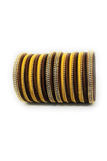Fancy Handmade Silk Thread Brown And Yellow Designer Bangles Set