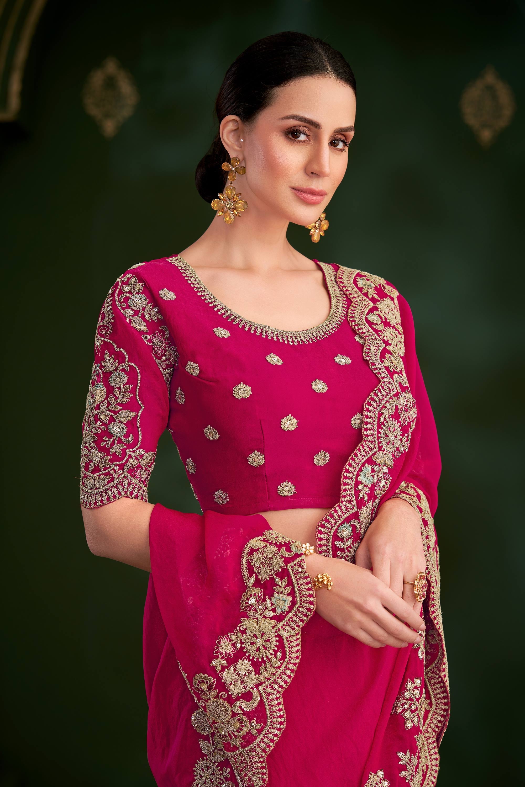 Celebrate style and tradition with this Reach Color Embroidered Border Work Saree, tailored for function wear and special gatherings. Designed with premium craftsmanship, the detailed embroidery on the borders brings out a rich and classy appeal. The matching designer blouse adds modern sophistication to its ethnic charm. With a lightweight design, it offers comfort without compromising on style. Perfect for festivities, this saree lets you stand out in every setting with grace and poise. Add this timeless piece to your wardrobe for a stunning blend of beauty and practicality.