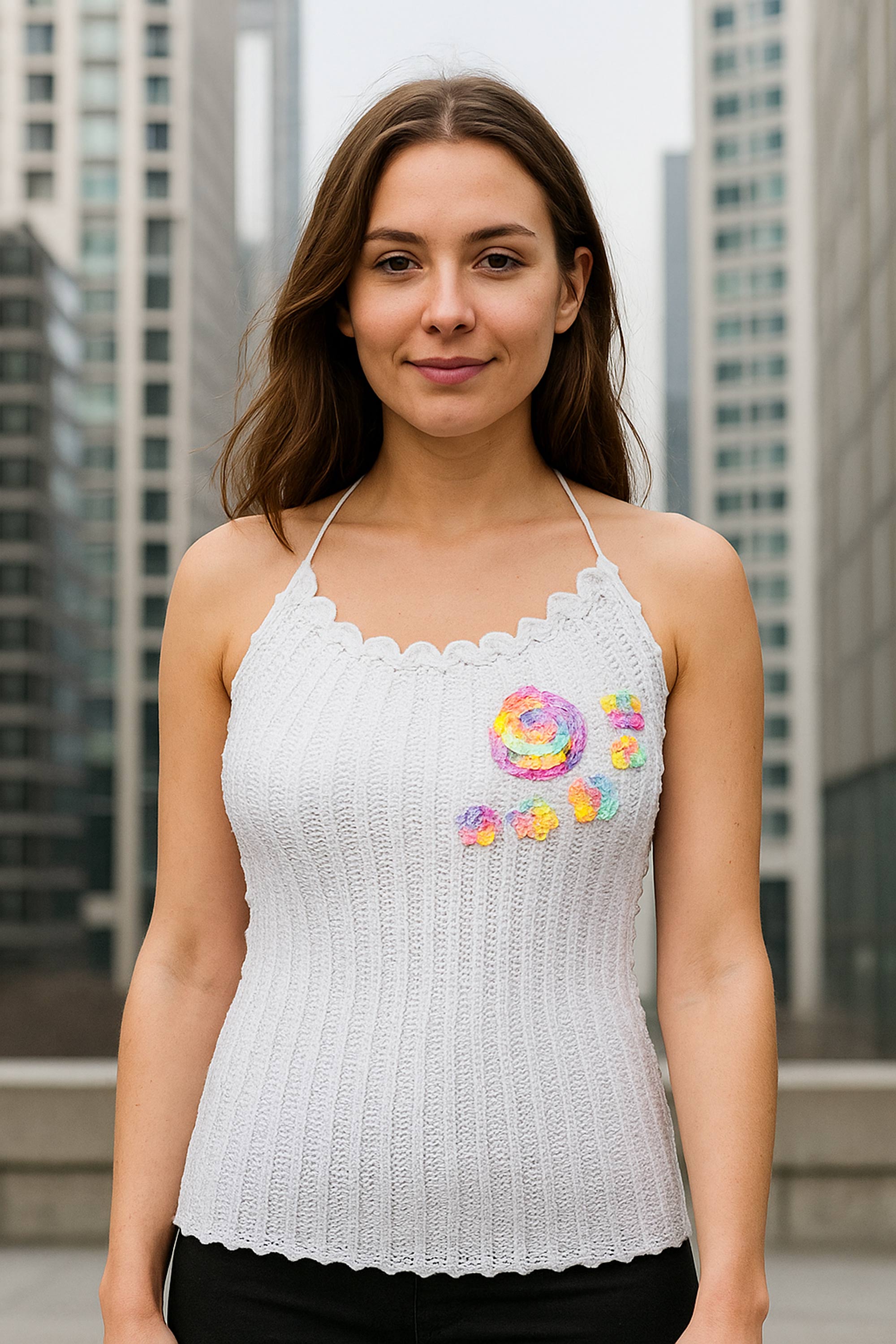 Handwoven From Premium Polyester Yarn Soft White Crochet Top