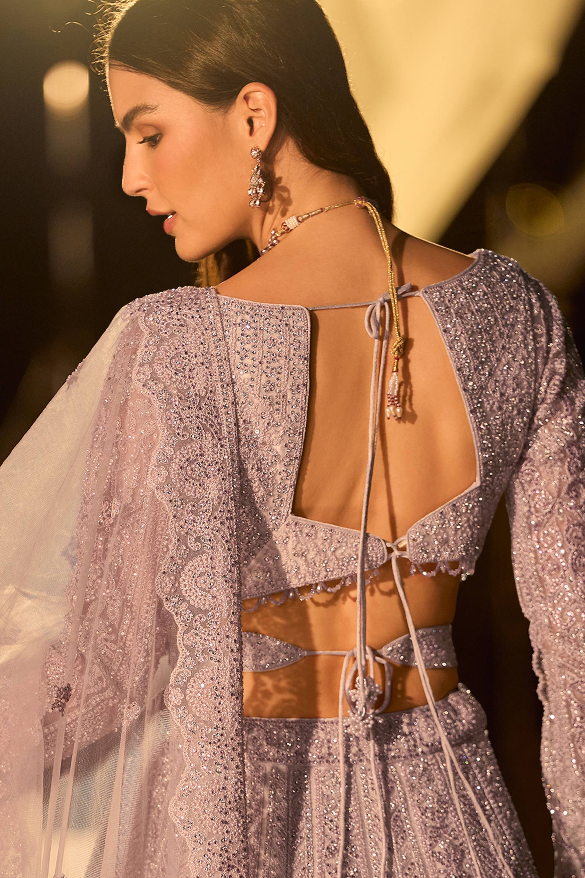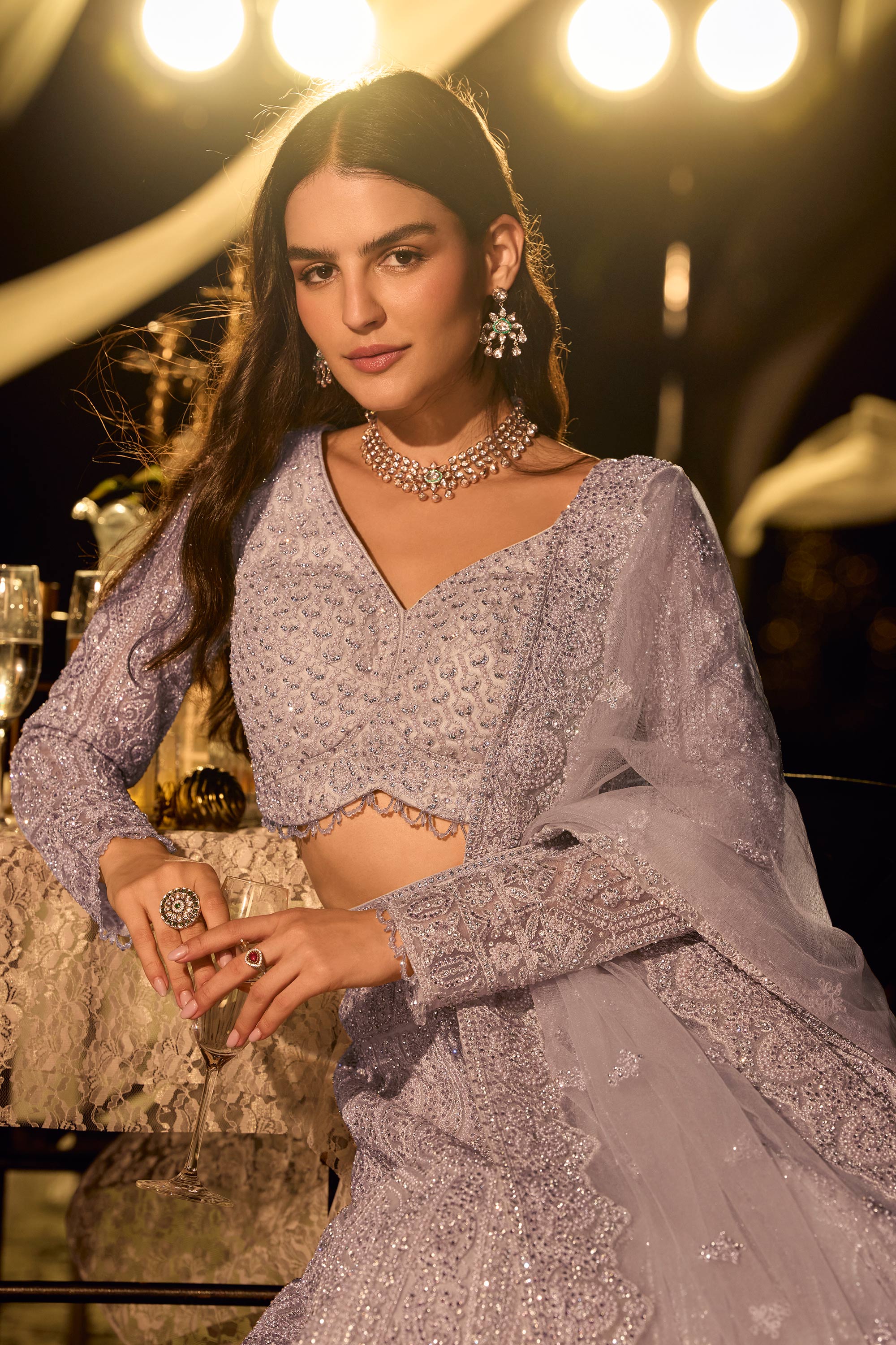 Lavender Wedding Wear Net Fabric Readymade Lehenga Choli