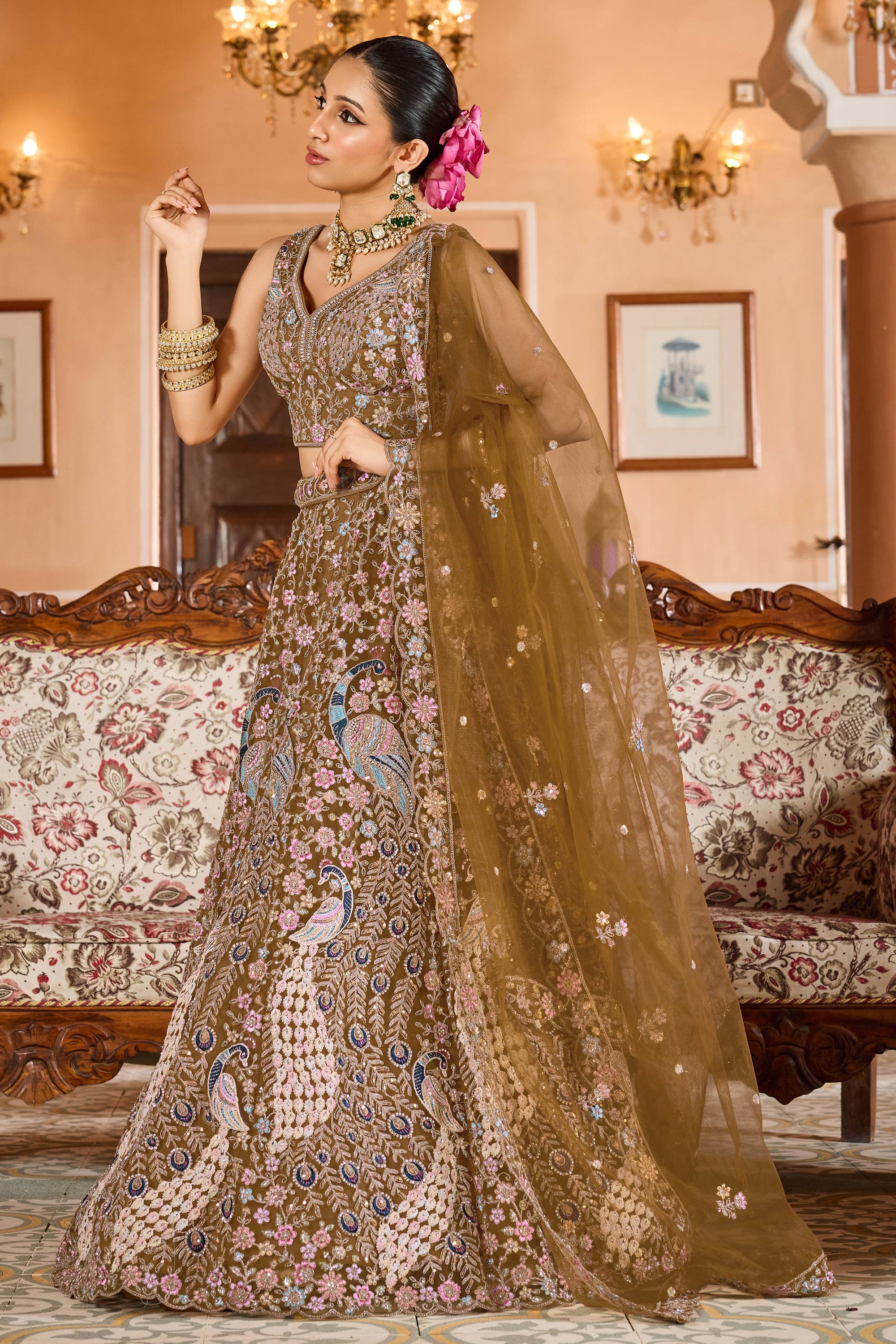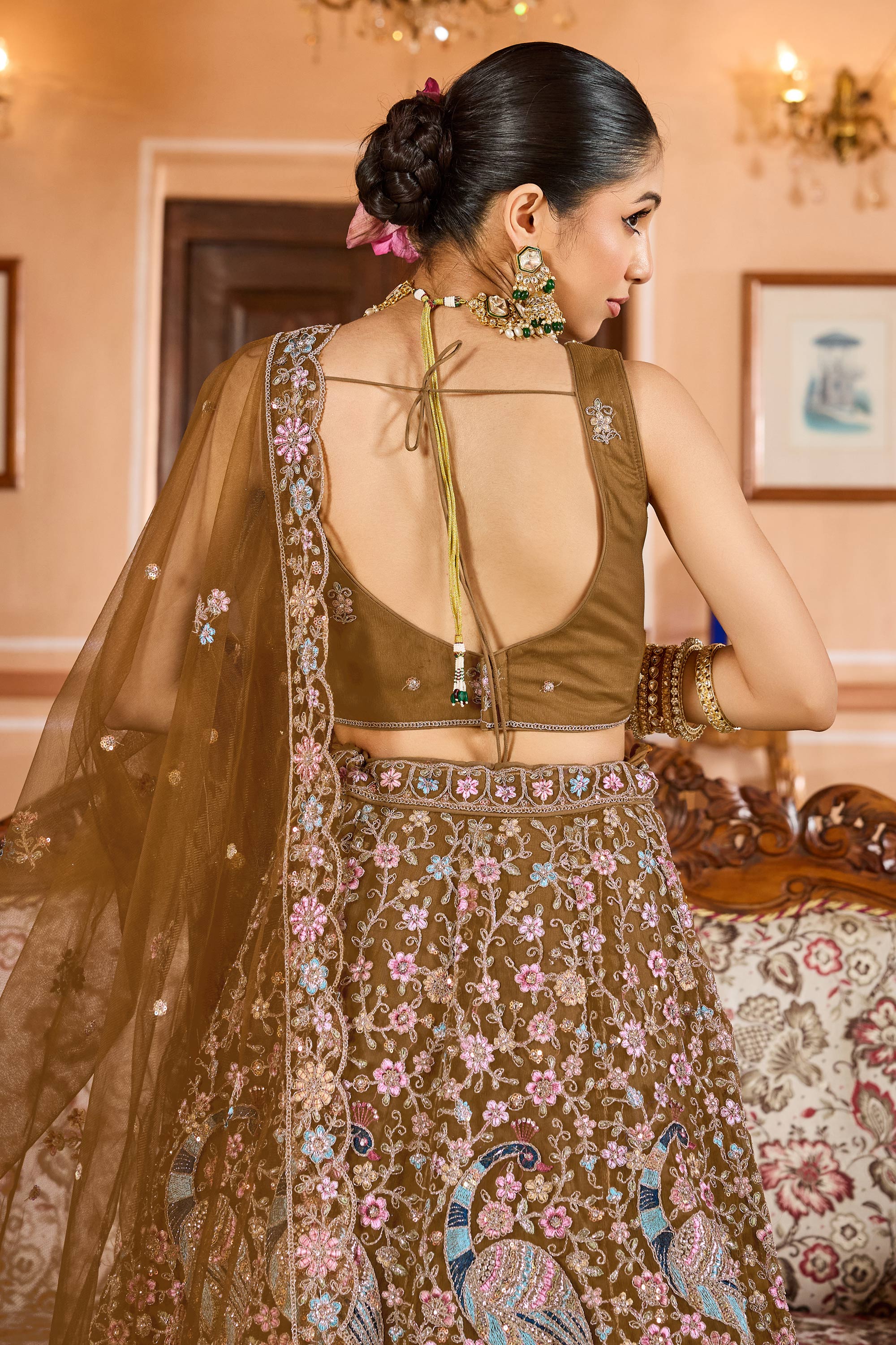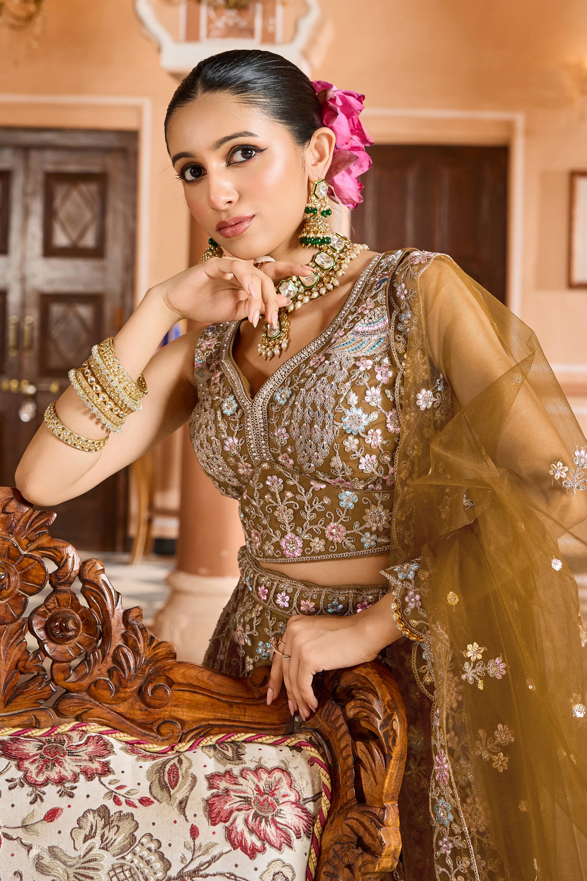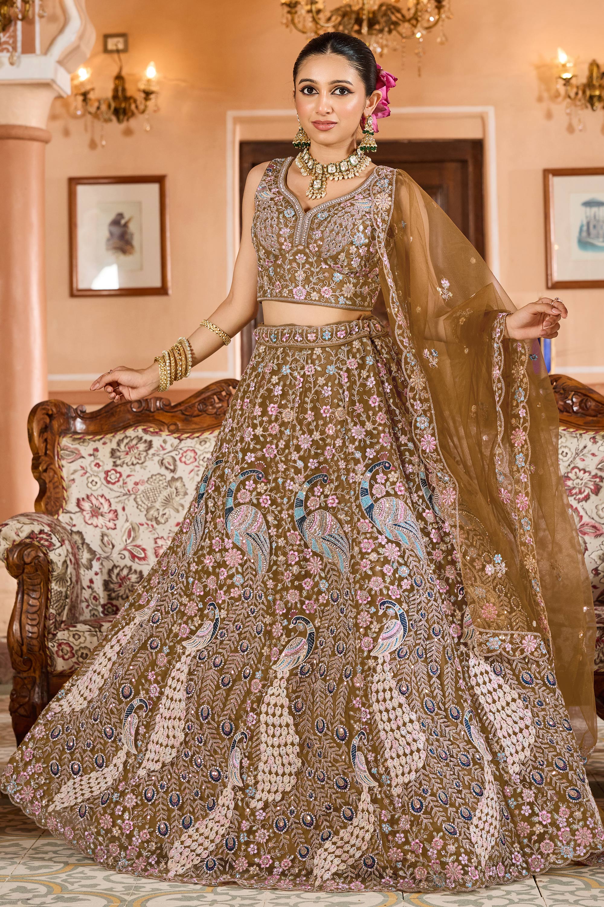 Net Fabric Brown Wedding Wear Lehenga Choli