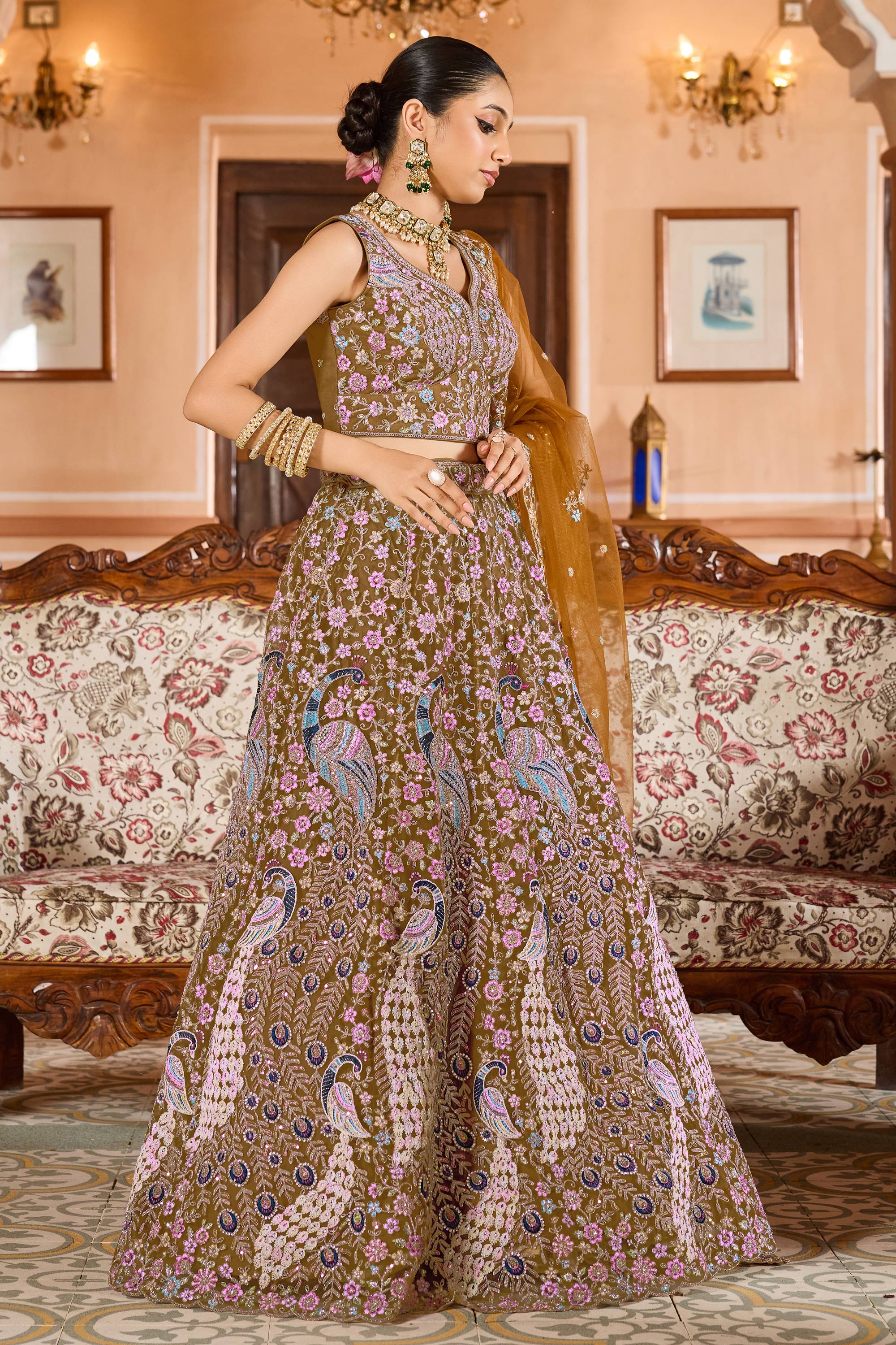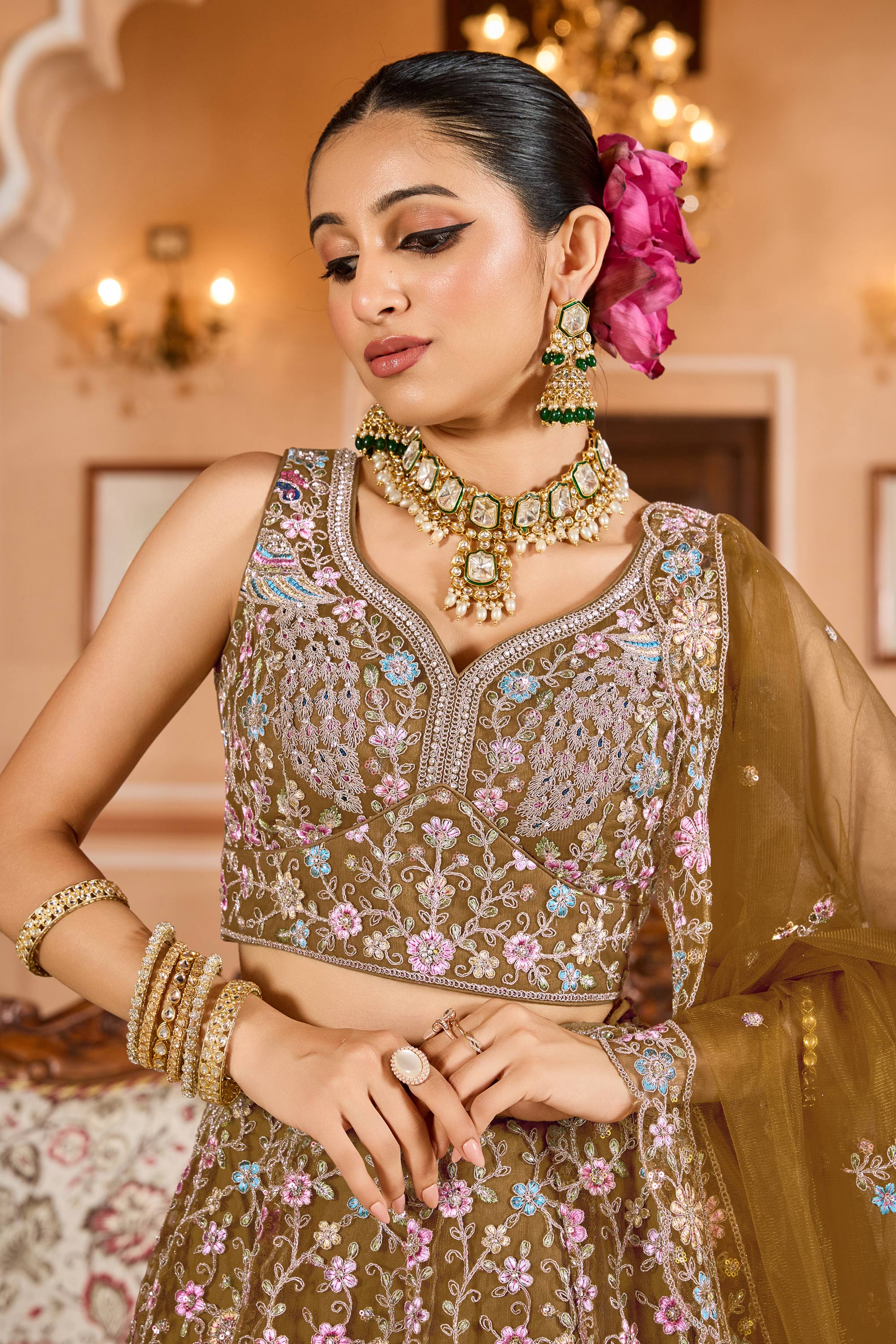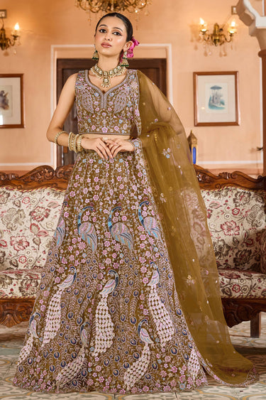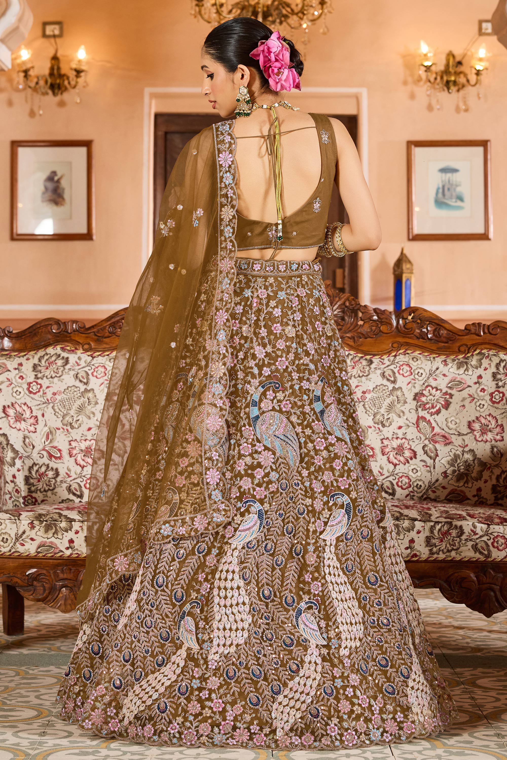 Net Fabric Brown Wedding Wear Lehenga Choli