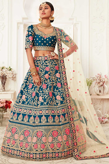Silk Fabric Teal Color Riveting Lehenga With Sequins Work