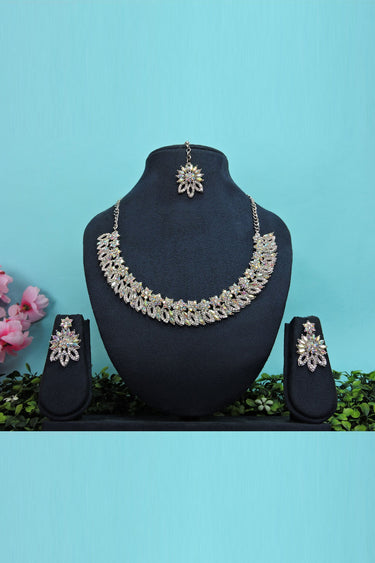 Alloy Material Multi Color Elegant Necklace Set Earrings And Mang Tikka For Women