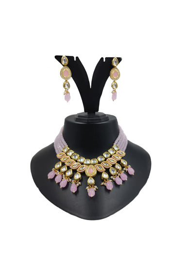 Alloy Material Pink Color Stylish Look Kundan Necklace Set