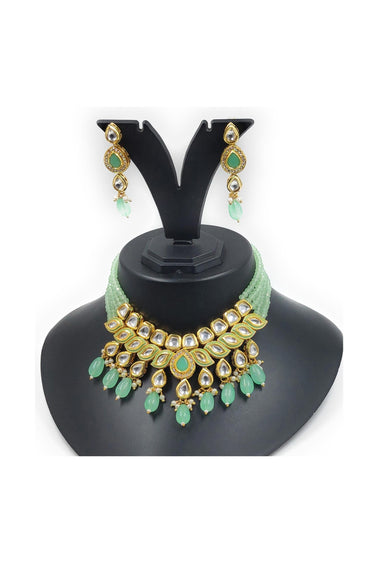 Alloy Material Sea Green Color Gorgeous Look Kundan Necklace Set