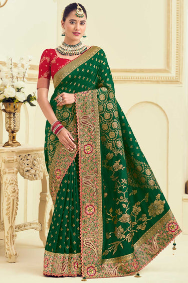 Alluring Dark Green Color Weaving Designs Silk Saree