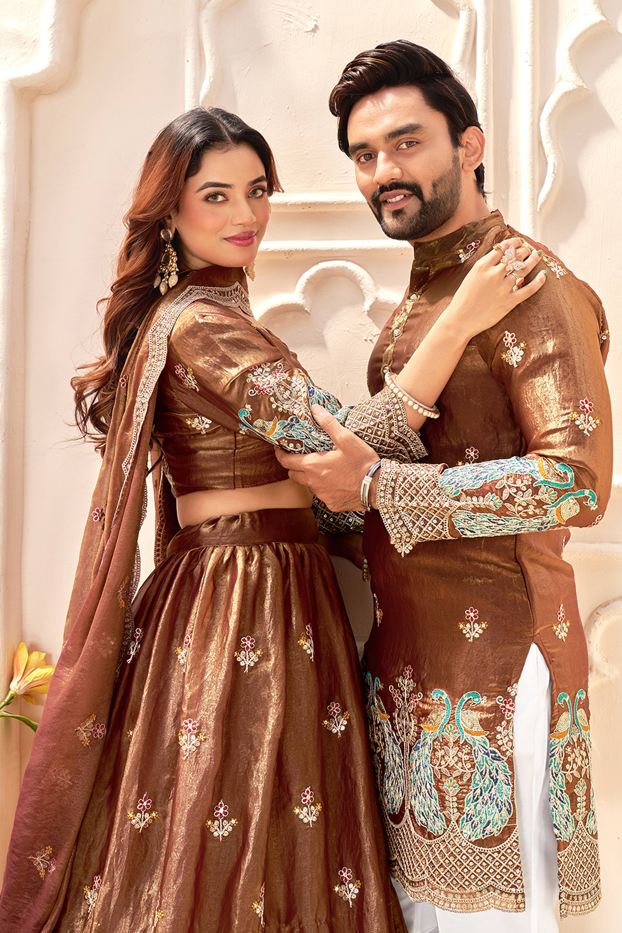 Art Silk Brown Sangeet Wear Readymade Men Stylish Kurta