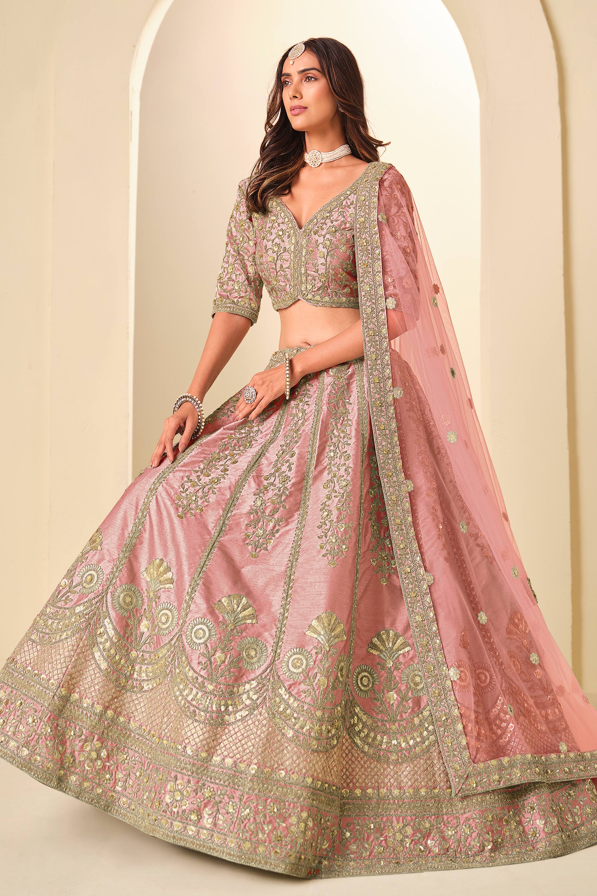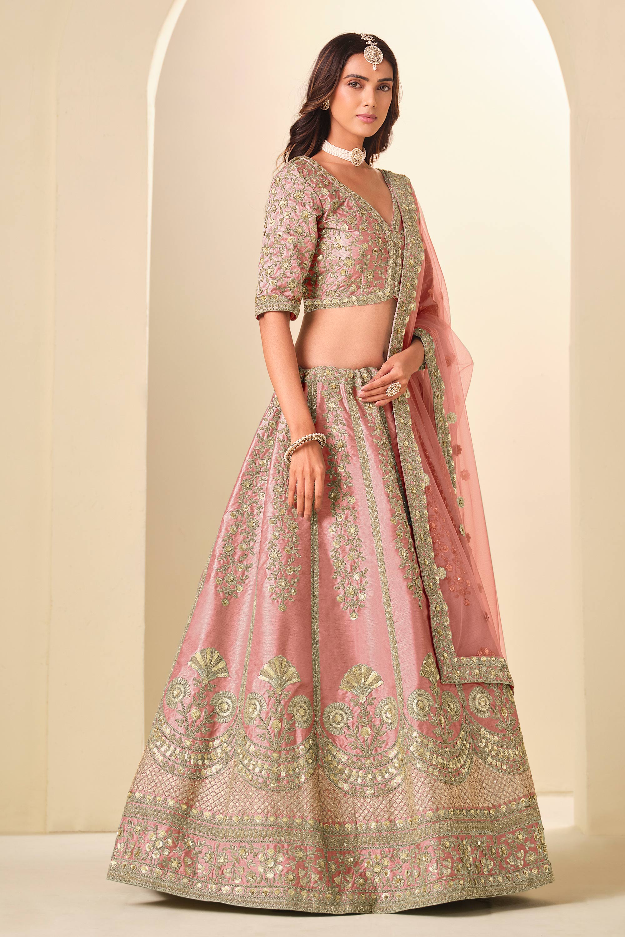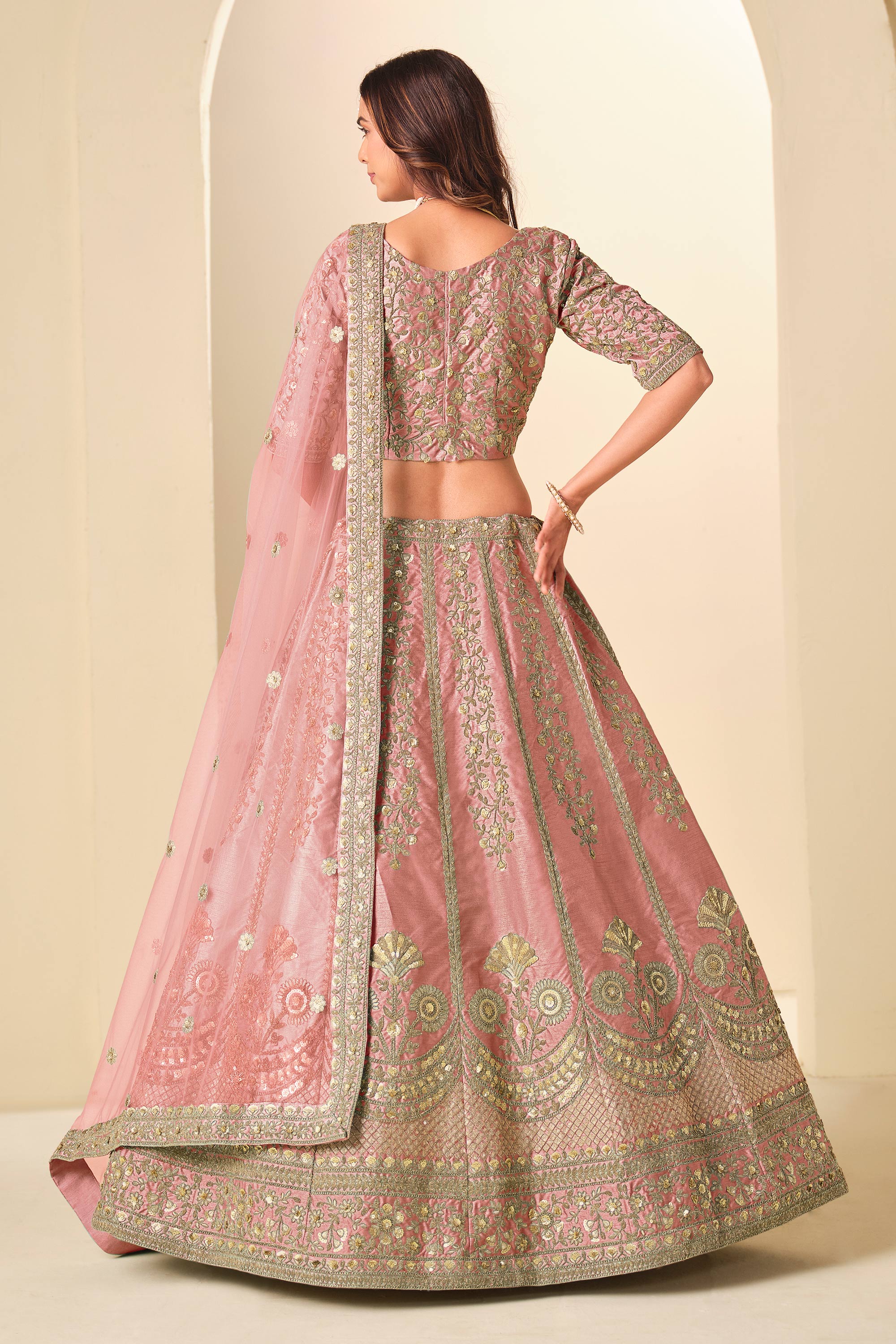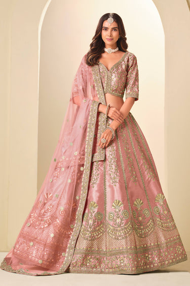 Art Silk Embroidered Pink Function Wear Lehenga Choli With Dupatta