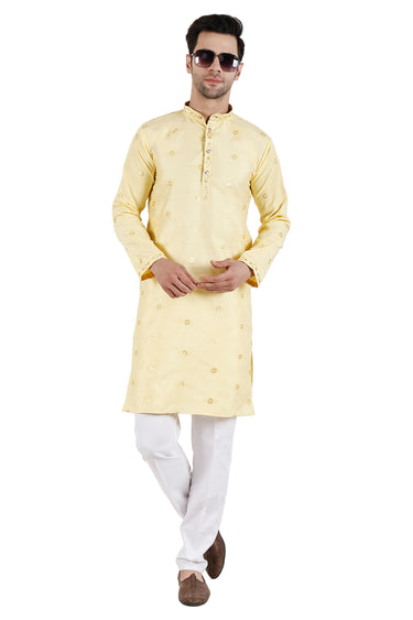 Art Silk Fabric Beige Color Festive Wear Readymade Men Stylish Kurta Pyjama