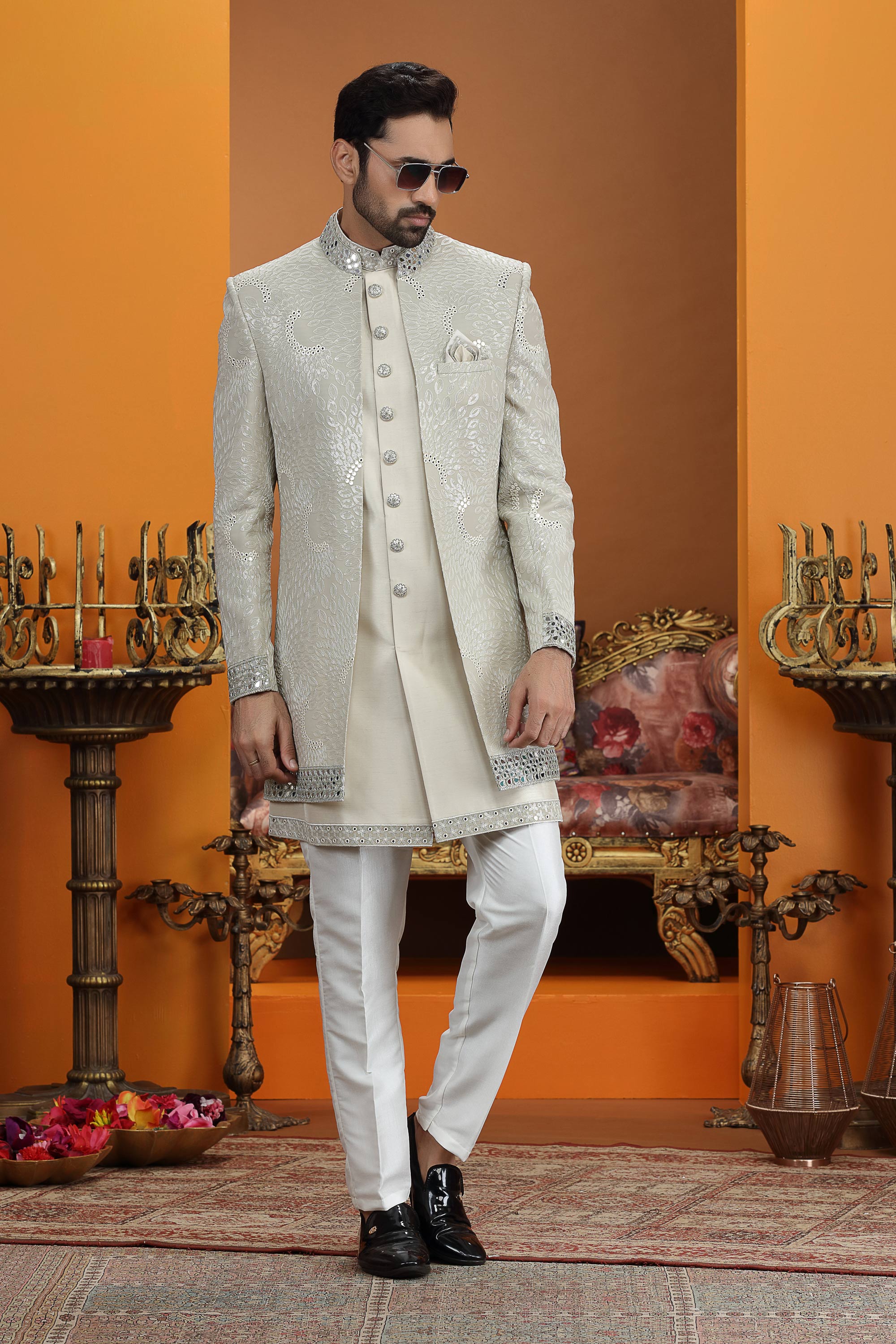 Art Silk Fabric Beige Readymade Indo Western For Wedding Wear