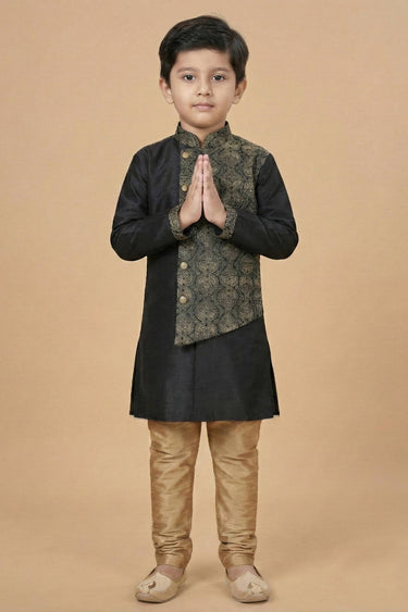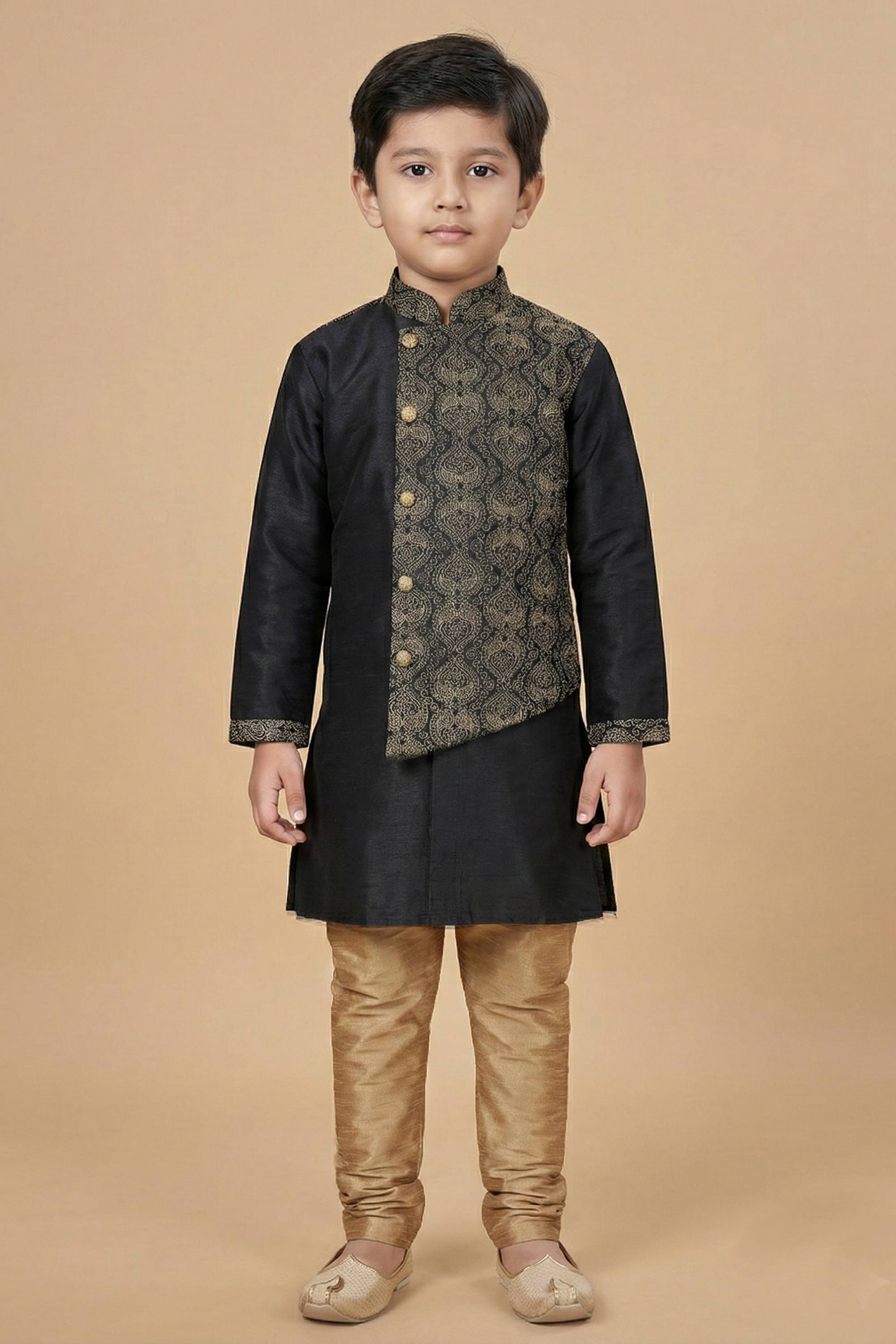 Art Silk Fabric Black Boys Readymade Kurta Pyjama For Sangeet Wear