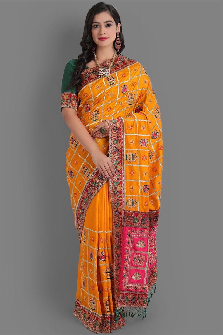 Art Silk Fabric Festival Wear Embroidered Work Superior Patola Saree In Orange Color