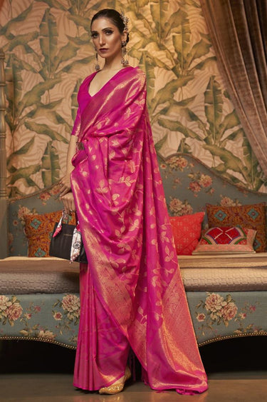 Art Silk Fabric Festival Wear Rani Color Weaving Work Phenomenal Saree