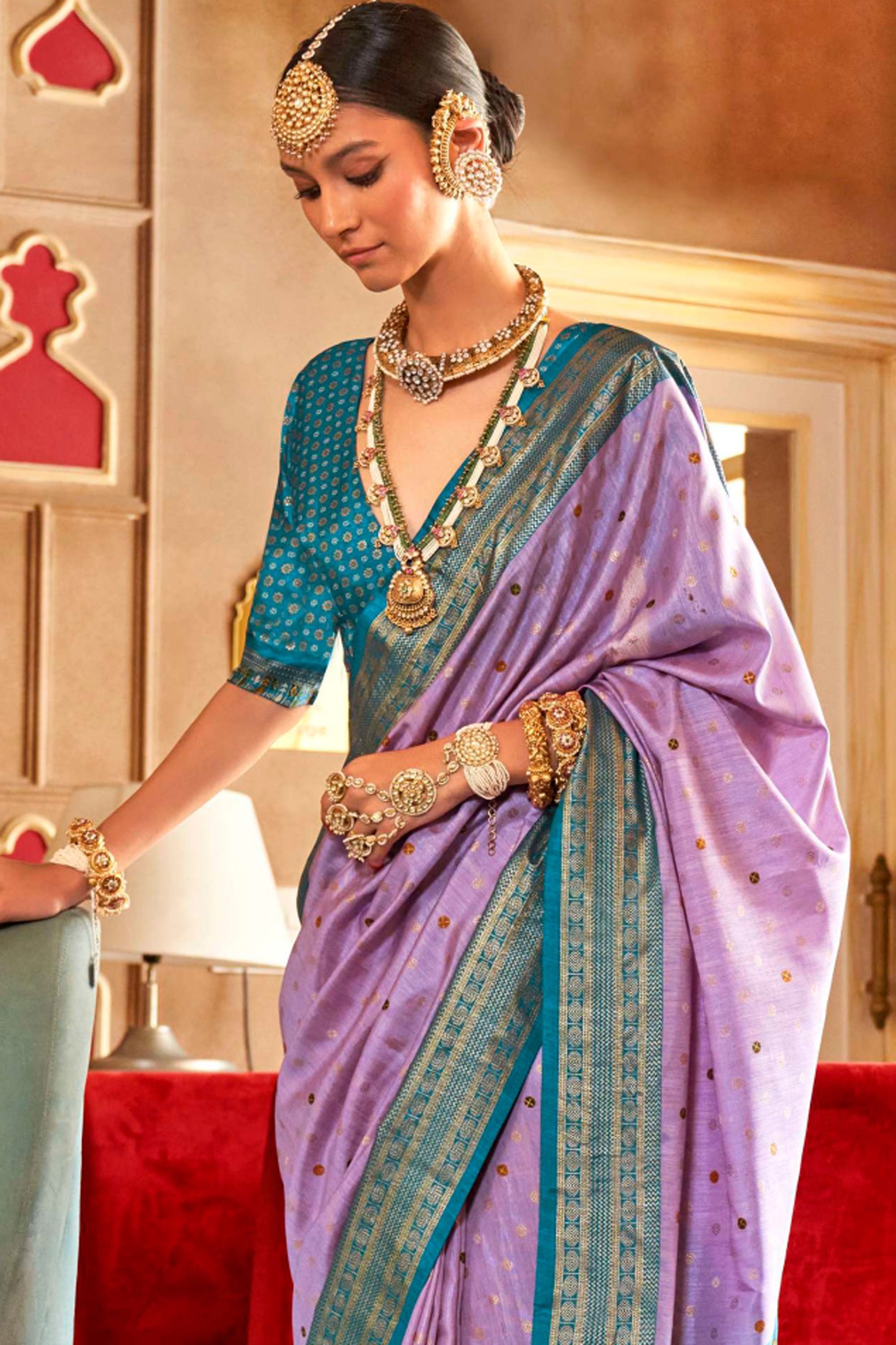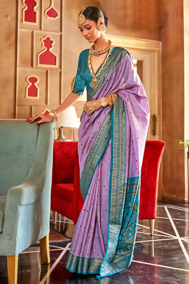 Art Silk Fabric Lavender Color Riveting Patola Printed Saree