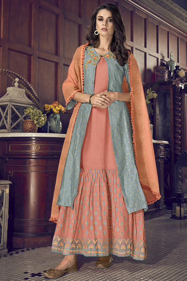 Art Silk Fabric Peach Color Party Style Winsome Salwar Suit