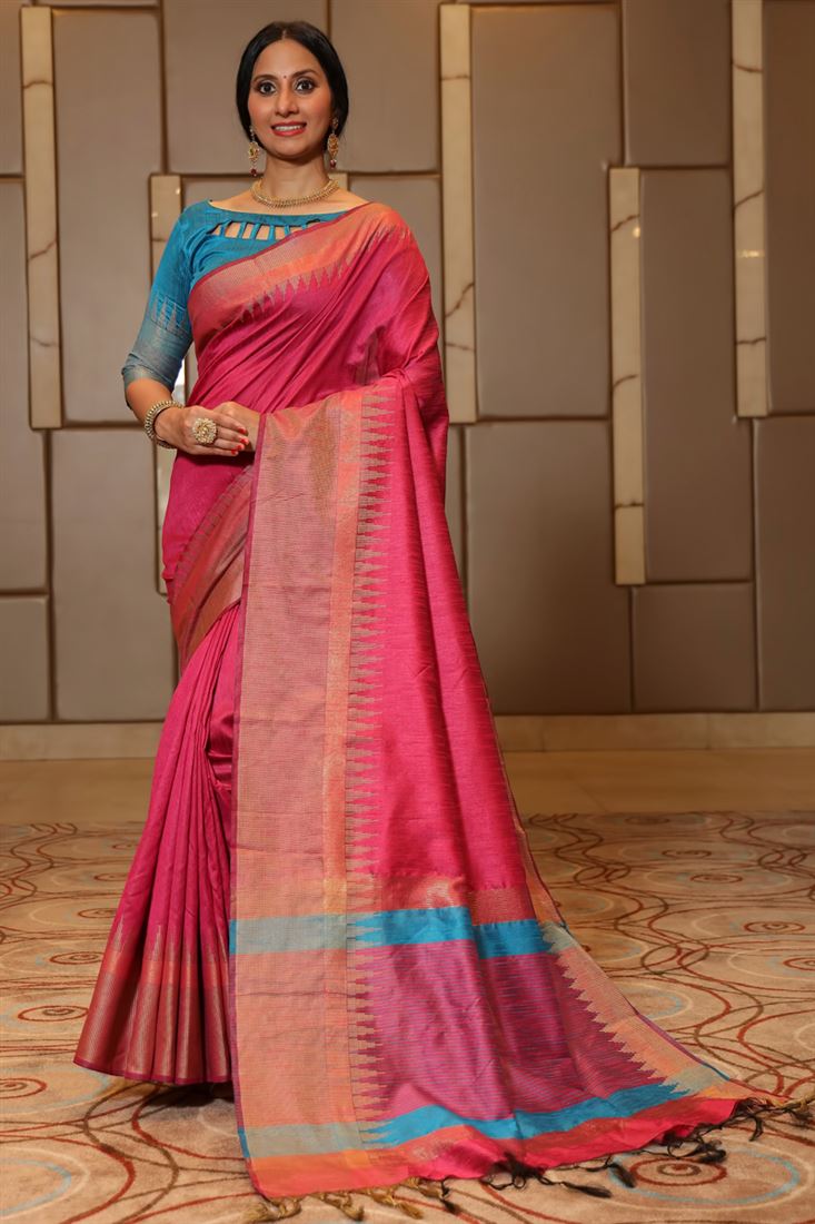 Our Art Silk Pink Saree is easy to drape and maintain, making it a perfect addition to your ethnic wear collection. It is a great gift option for your loved ones too