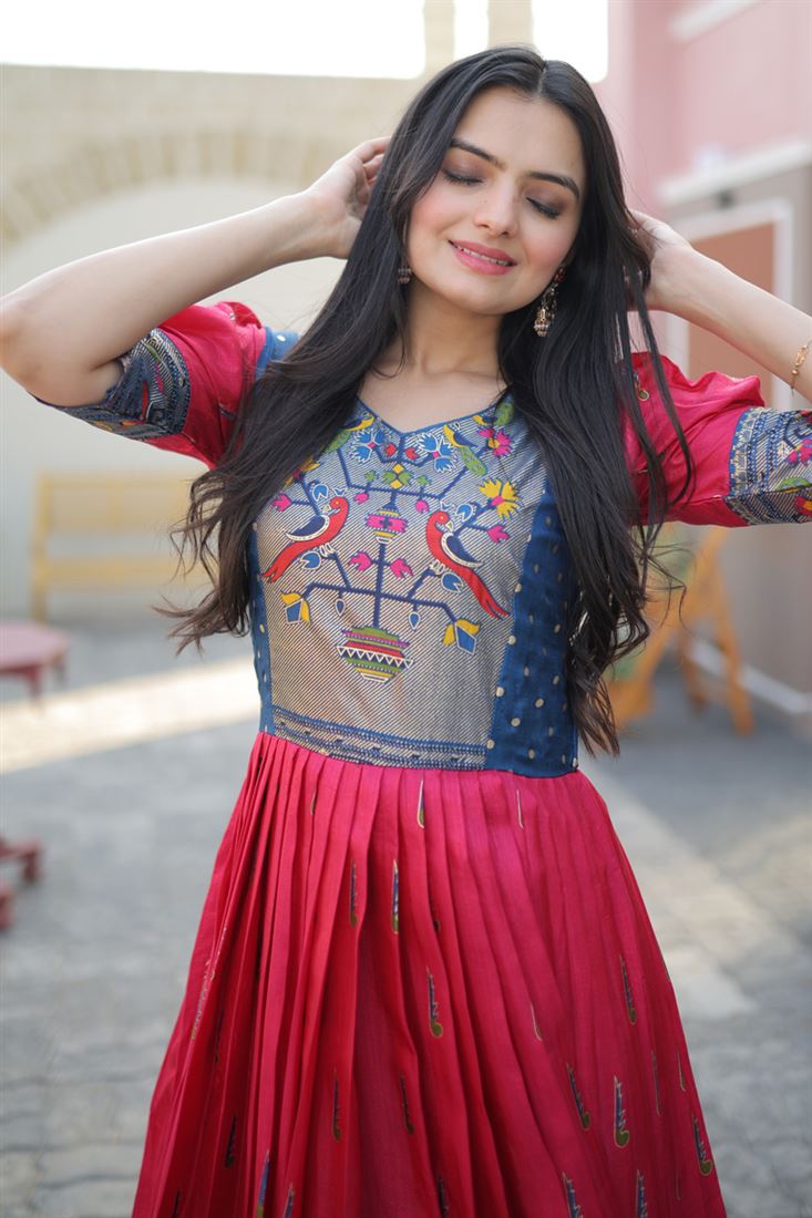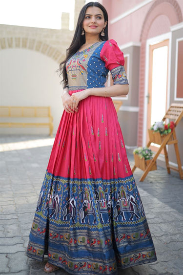 Art Silk Fabric Pink Color Superior Patola Printed Gown
