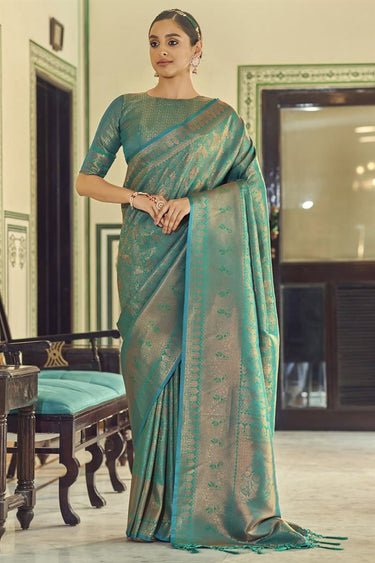 Art Silk Fabric Sea Green Color Incredible Weaving Work Saree