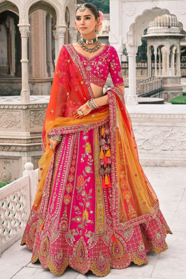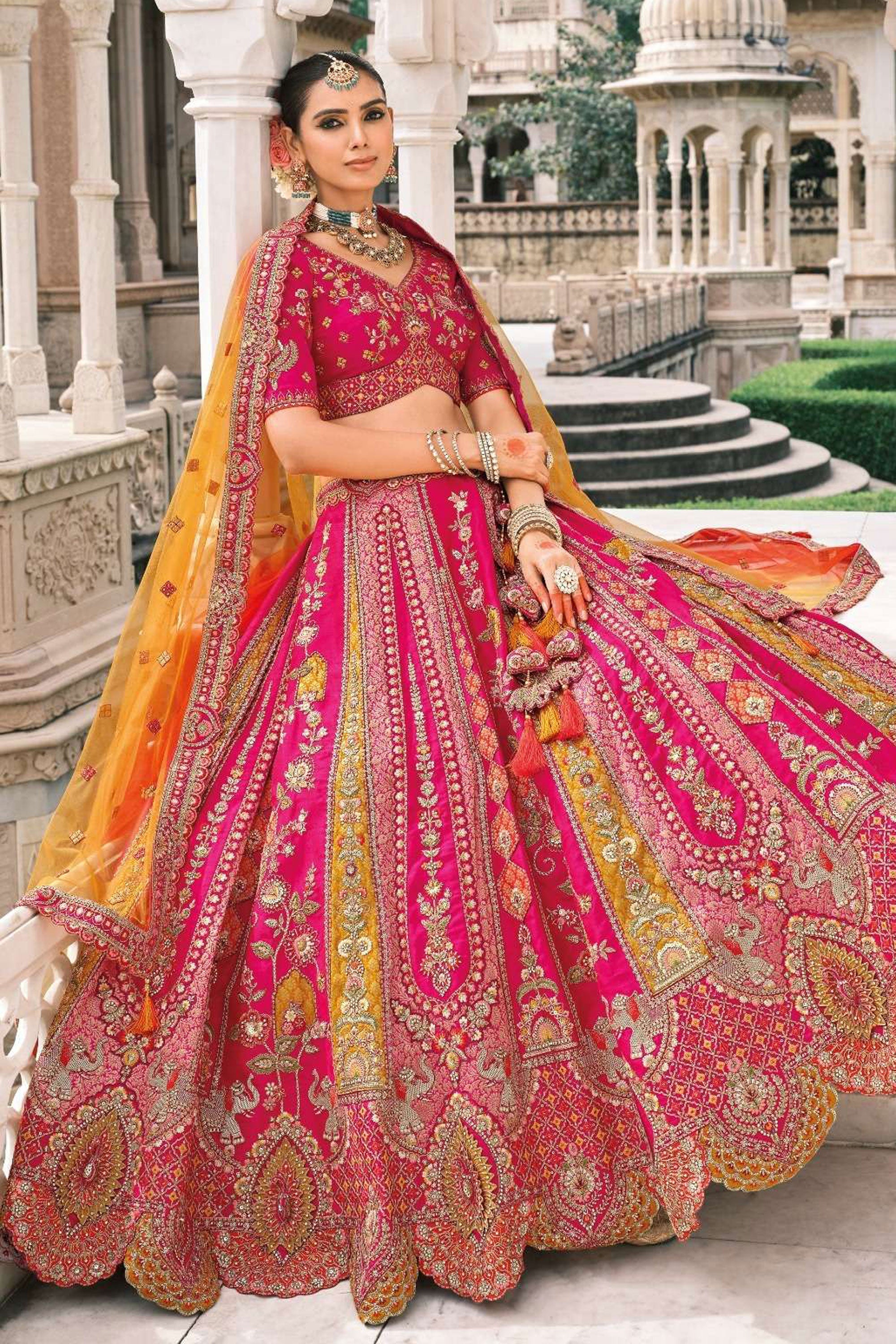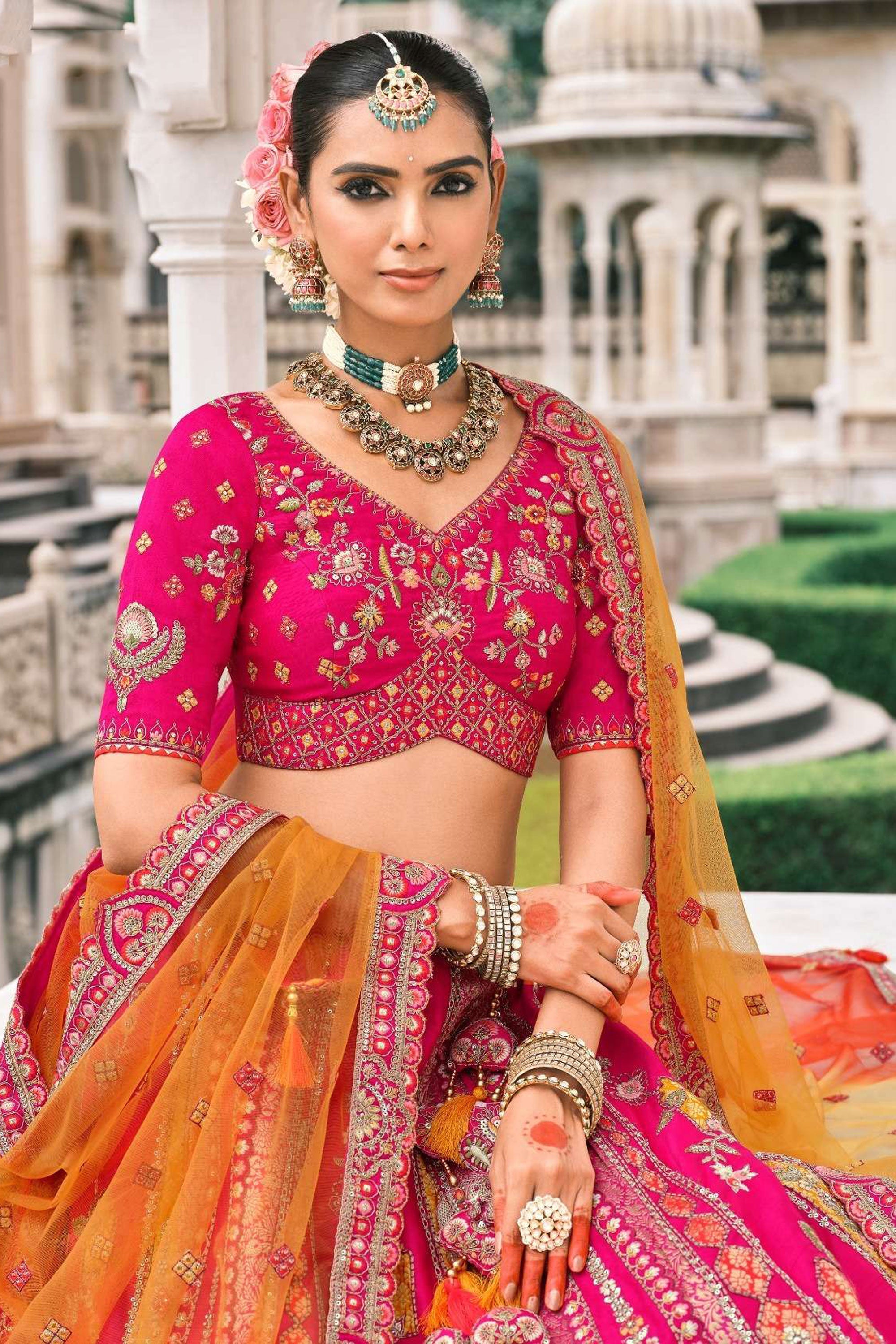 Art Silk Fabric Wedding Wear Luxurious Lehenga Choli In Rani Color