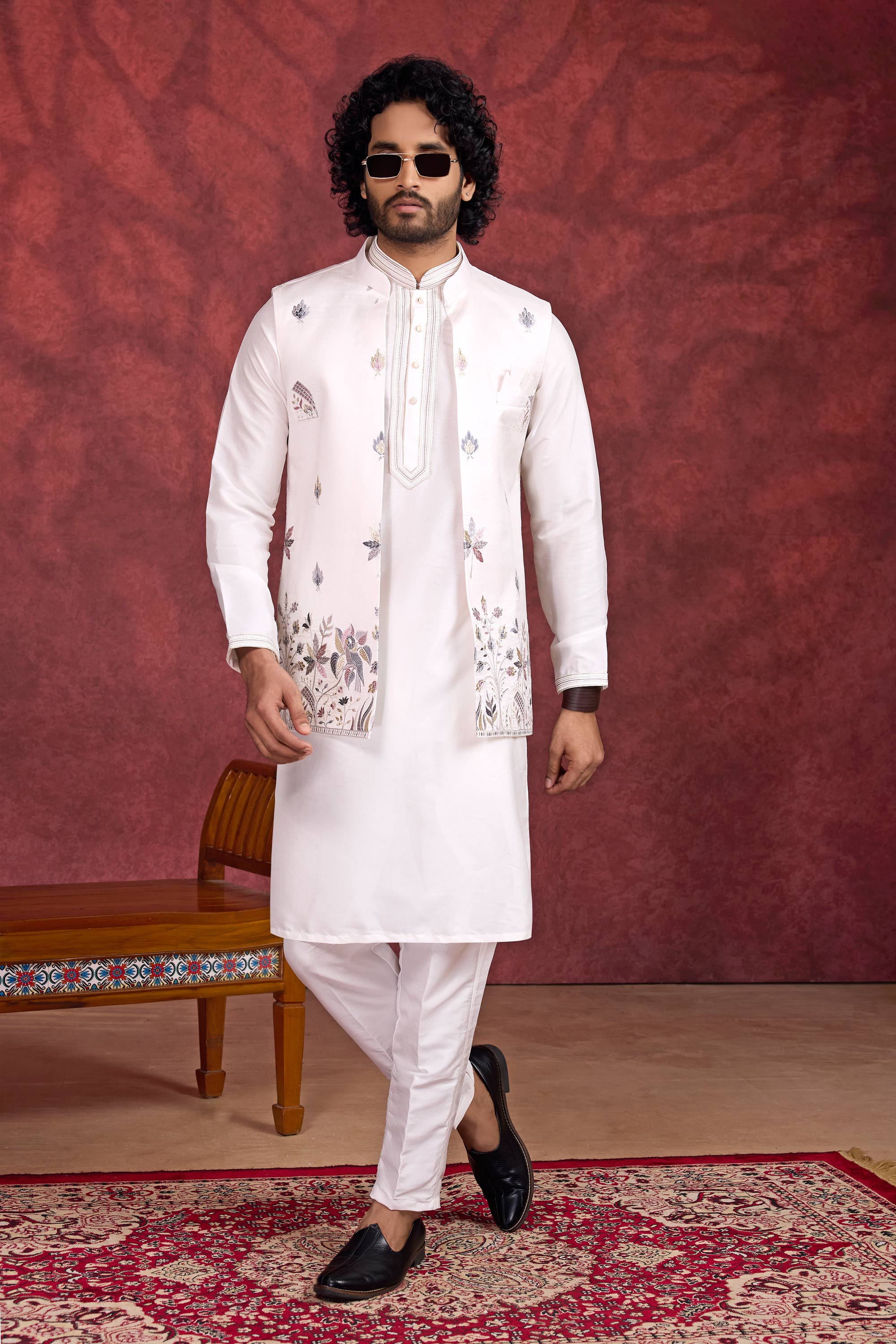 Transform your look for weddings and special occasions with this Color Art Silk Fabric Readymade Kurta and Aligadhi Pant ensemble. Designed with an elegant embroidered jacket, this set is both traditional and contemporary, offering comfort and style in equal measure. The lightweight and breathable fabric ensures all-day wearability, making it perfect for festivities or formal events. The refined embroidery adds sophistication, making you stand out effortlessly. Tailored to perfection, this attire ensures a perfect fit and ease of movement for celebratory moments.