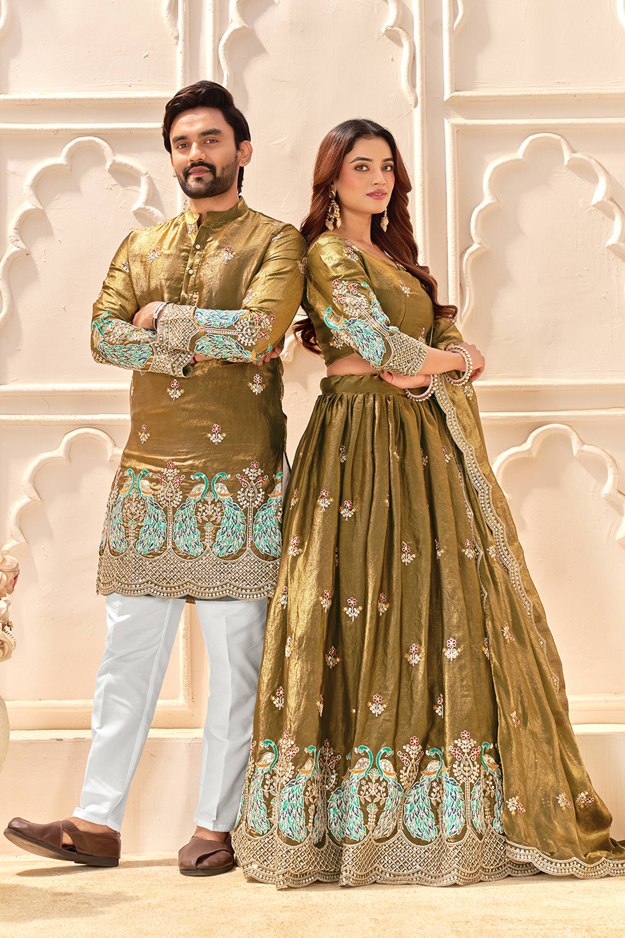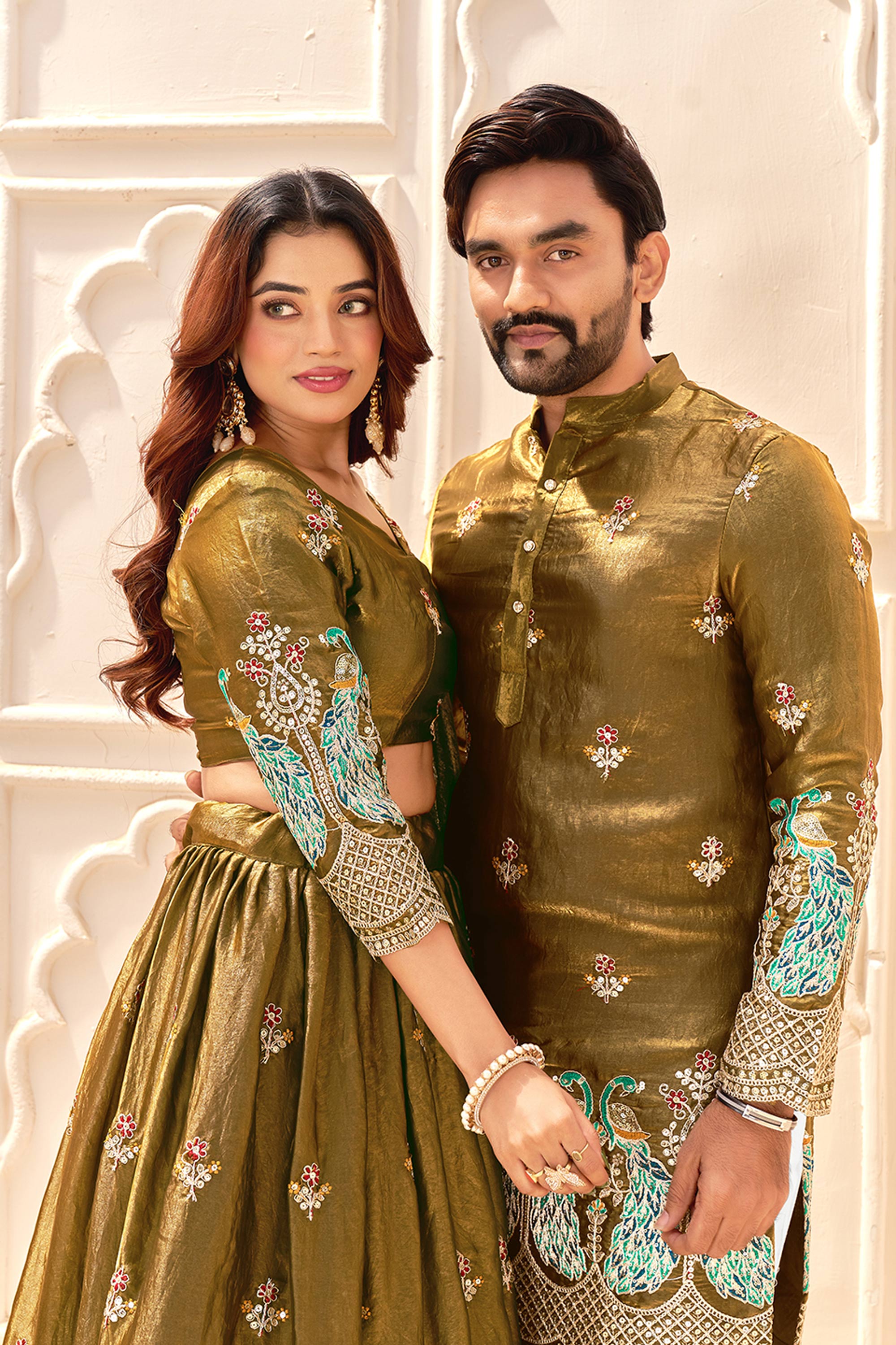 Art Silk Olive Sangeet Wear Readymade Designer Men Kurta