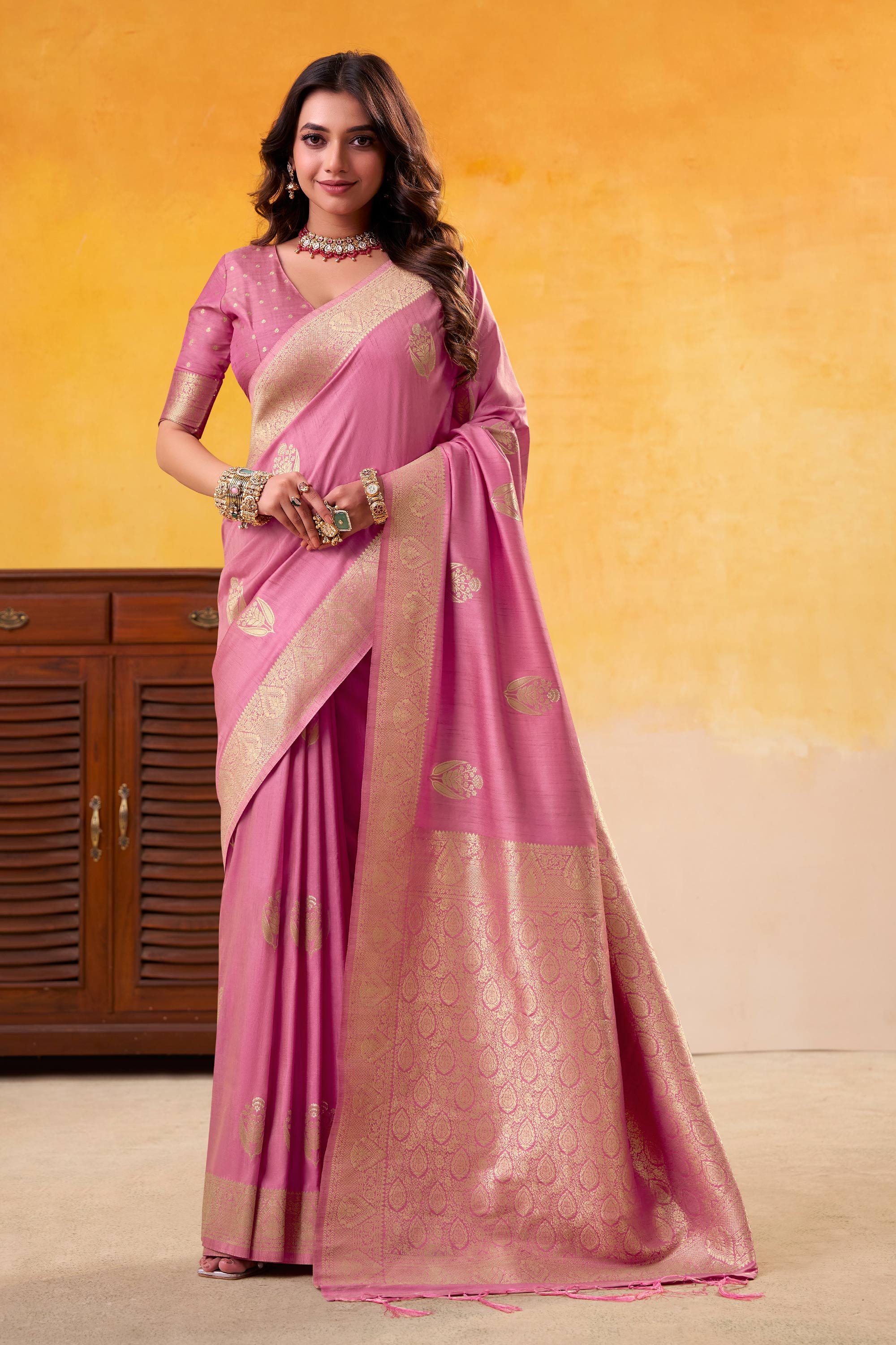 Art Silk Weaving Work Pink Saree For Function Wear