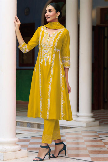 Art Silk Yellow Embroidered Function Wear Salwar Suit