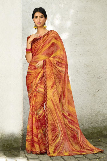 Attractive Chiffon Fabric Mustard Color Printed Saree