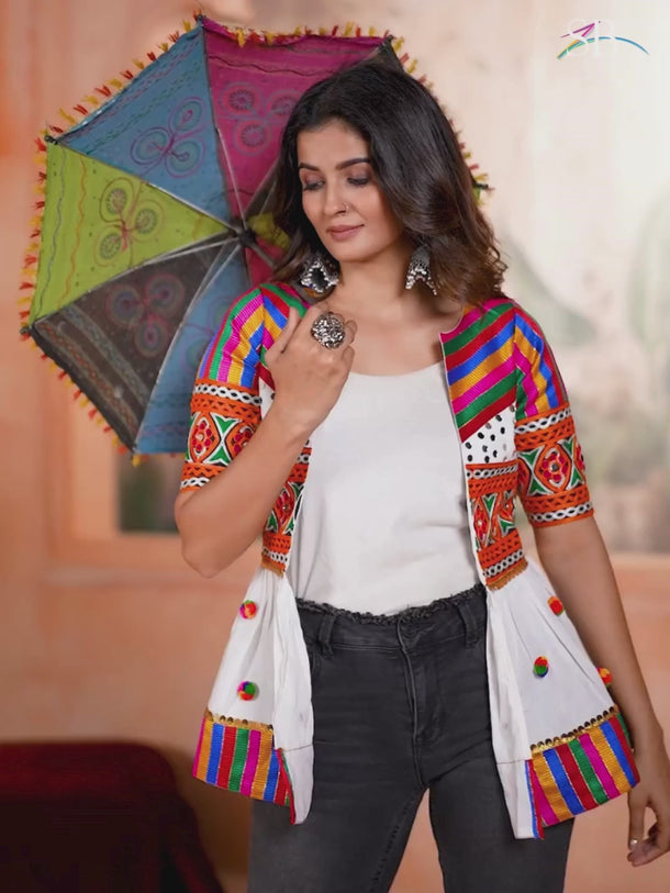 Attractive White Color Cotton Readymade Women's Navratri Kediya Top