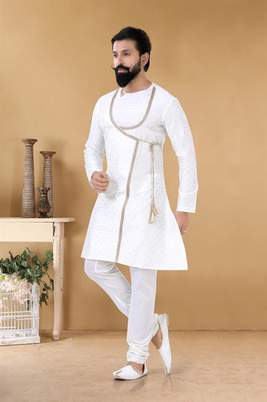 Attractive White Color Fancy Fabric Function Wear Readymade Peshwai Style Kurta For Men