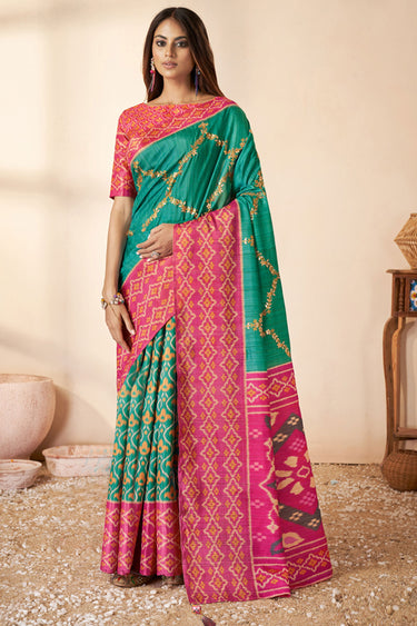 Awesome Bhagalpuri Silk Fabric Saree In Sea Green Color