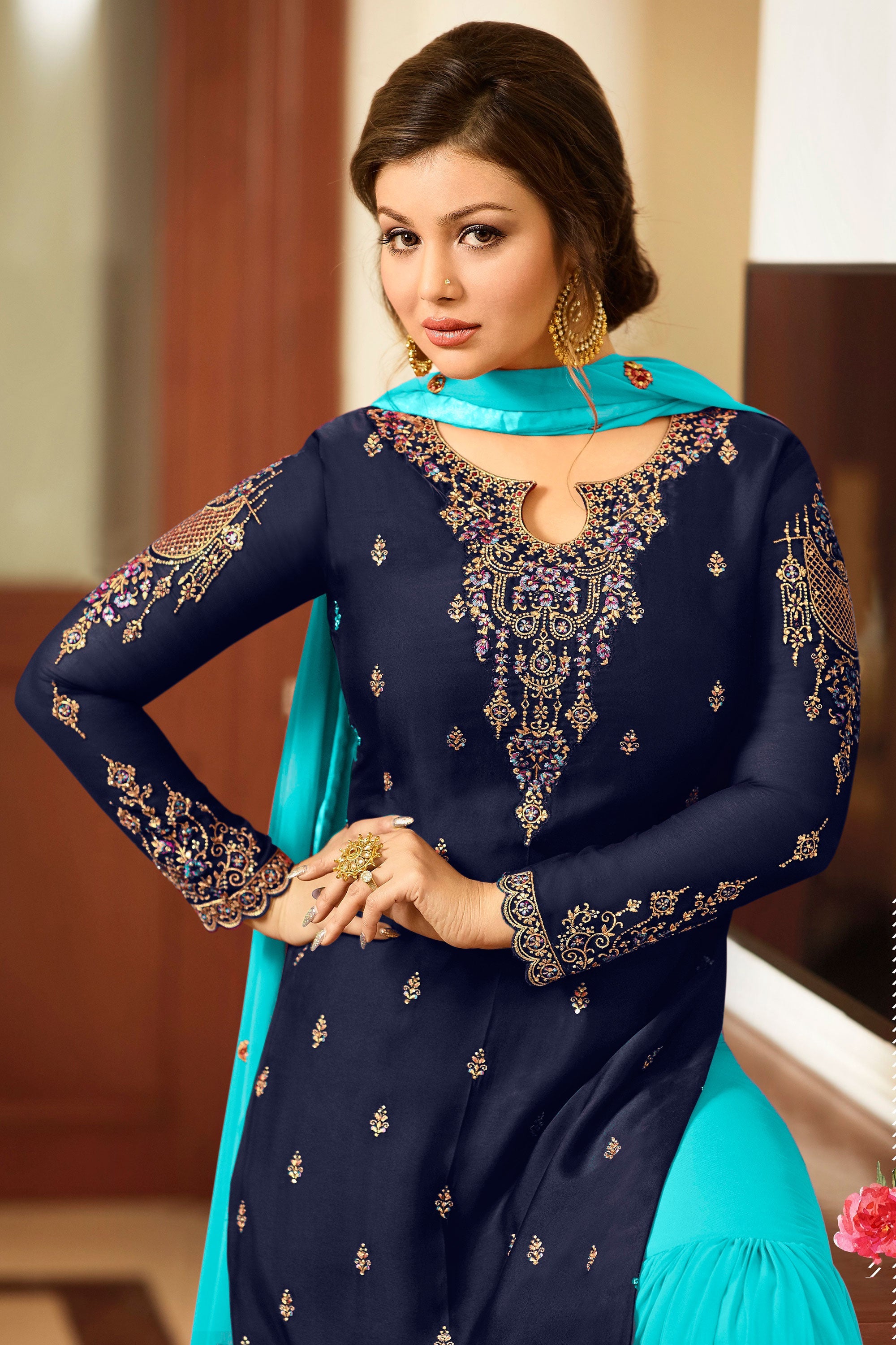 Ayesha Takia Georgette Blue Designer Palazzo Salwar Suit