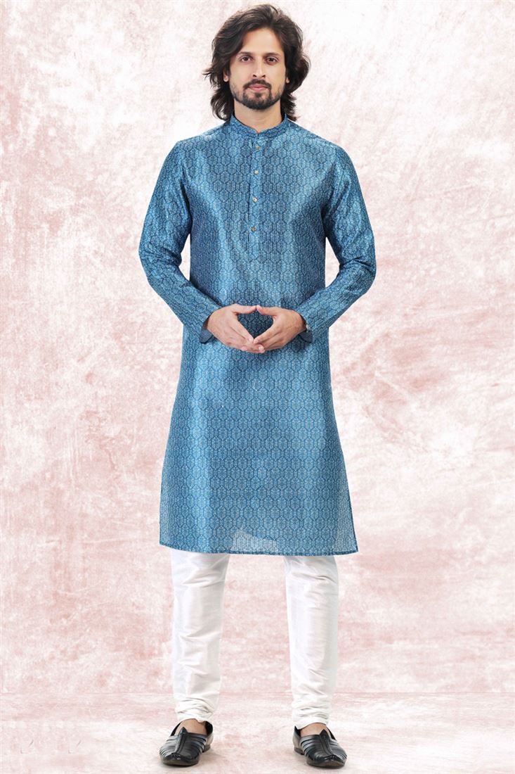 Banarasi Art Silk Blue Fancy Kurta Pyjama