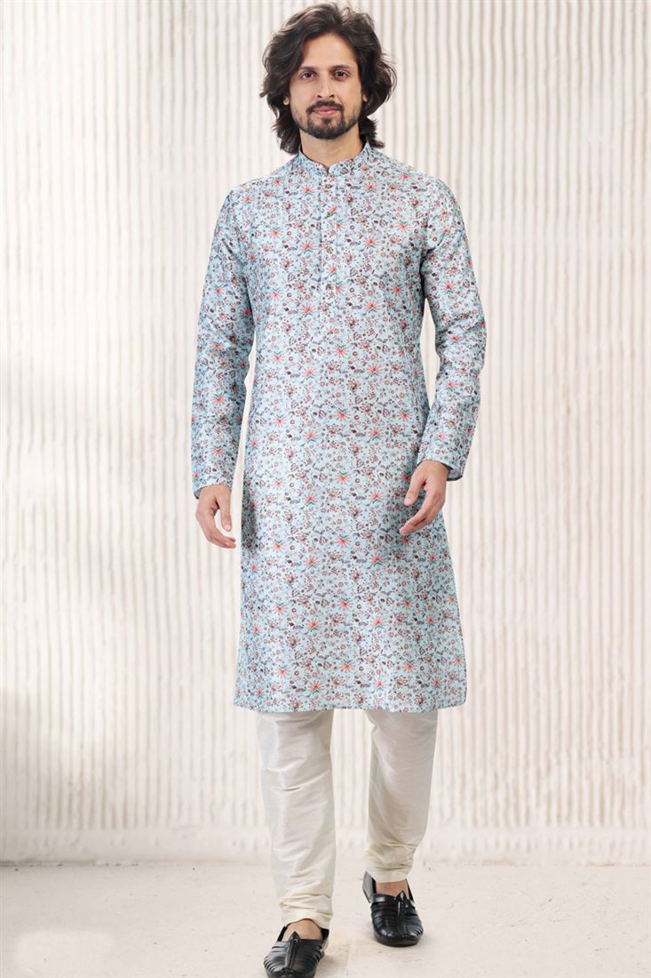 Banarasi Art Silk Kurta Pyjama In Sky Blue Color