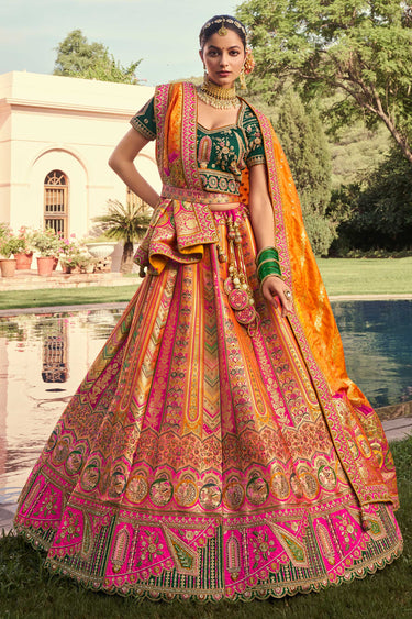 Banarasi Silk Bridal Lehenga Choli With Heavy Embroidered In Multi Color