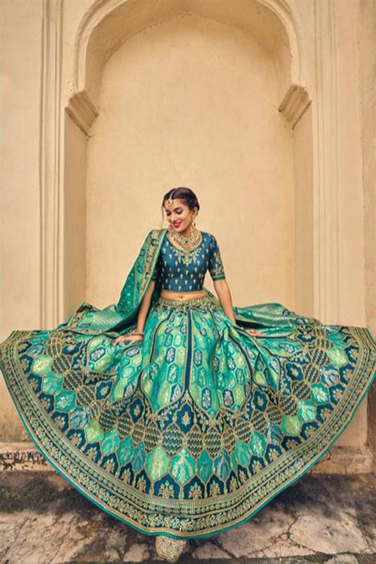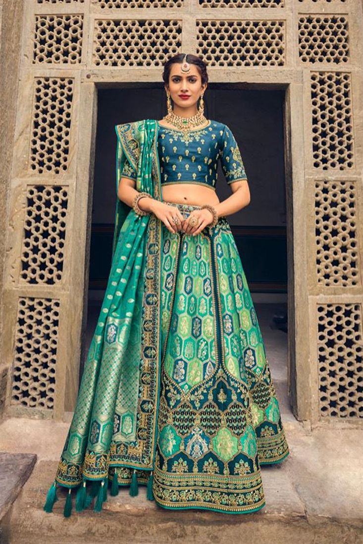 Banarasi Silk Fabric Sea Green Color Winsome Lehenga In Wedding Wear