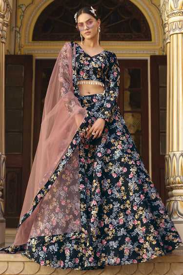 Beautiful Navy Blue Color Designer Art Silk Fabric Printed Lehenga Choli