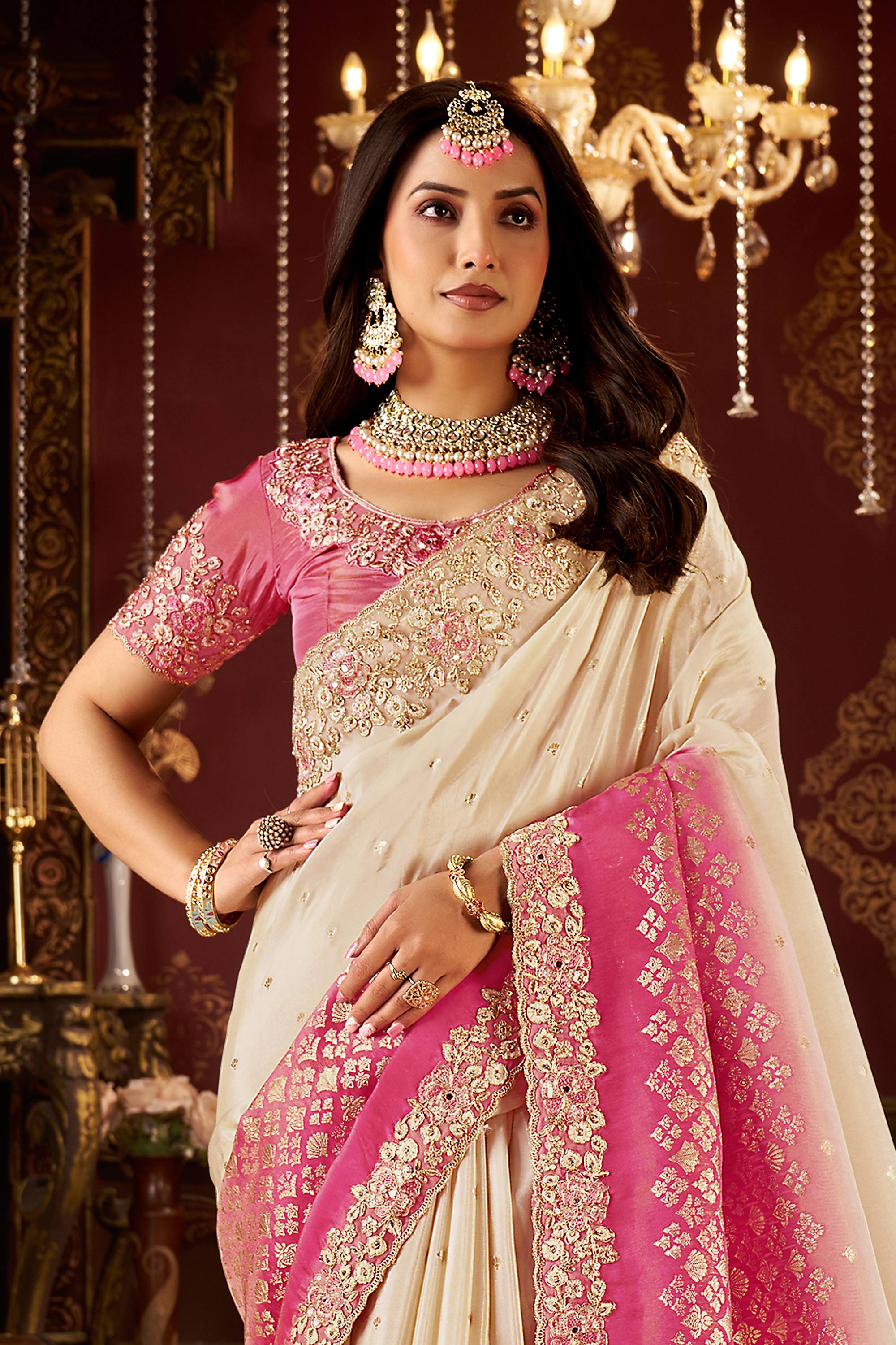 Step into the spotlight with this graceful fancy silk saree, designed to impress at any celebration. Adorned with detailed embroidered border work, this saree exudes an air of classic sophistication, ideal for weddings or festive occasions. The soft and comfortable silk fabric ensures youll look and feel stunning all day long. Complete with an unstitched blouse, this piece offers versatility and style for your perfect customized fit. This saree is a true reflection of tradition and elegance combined.