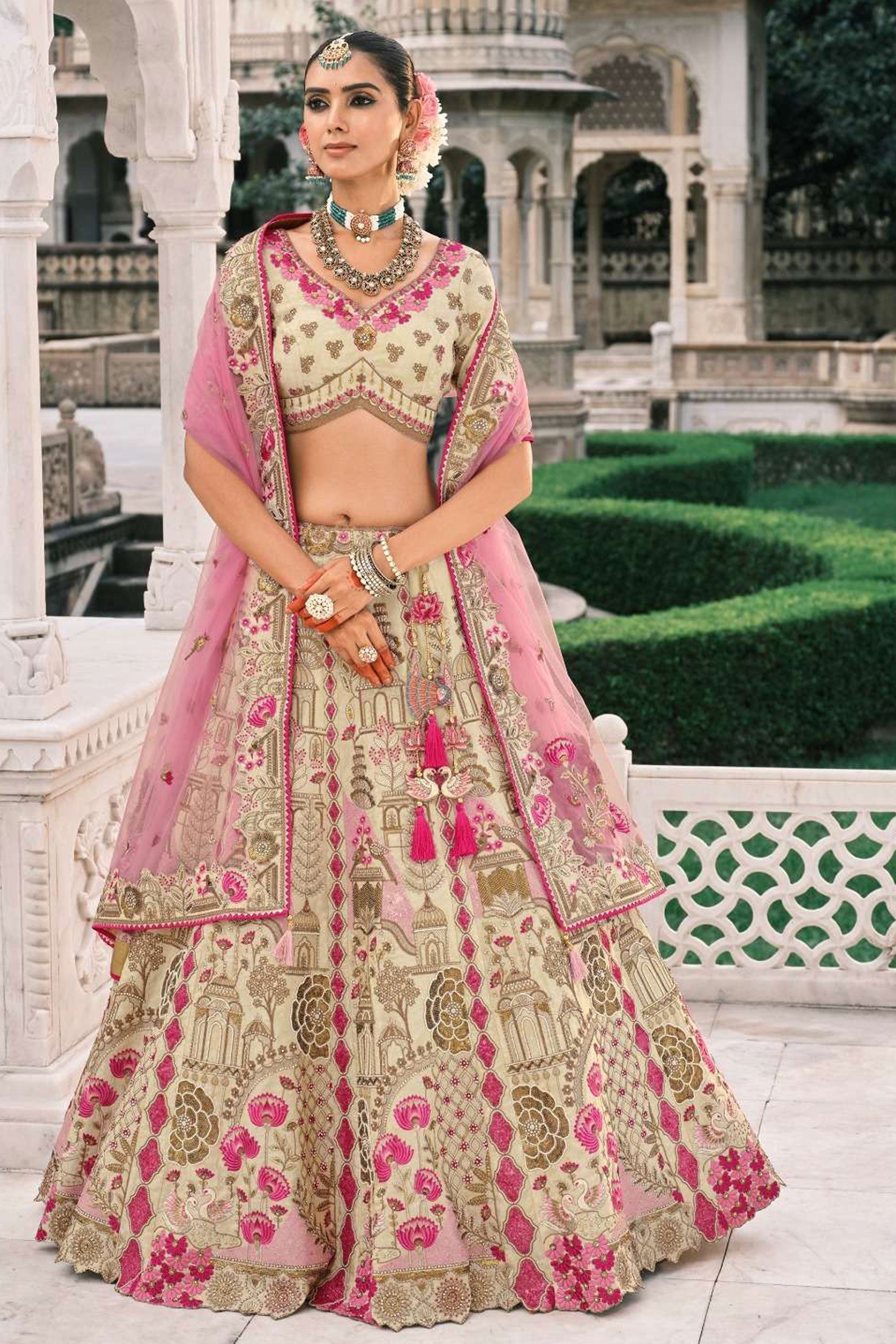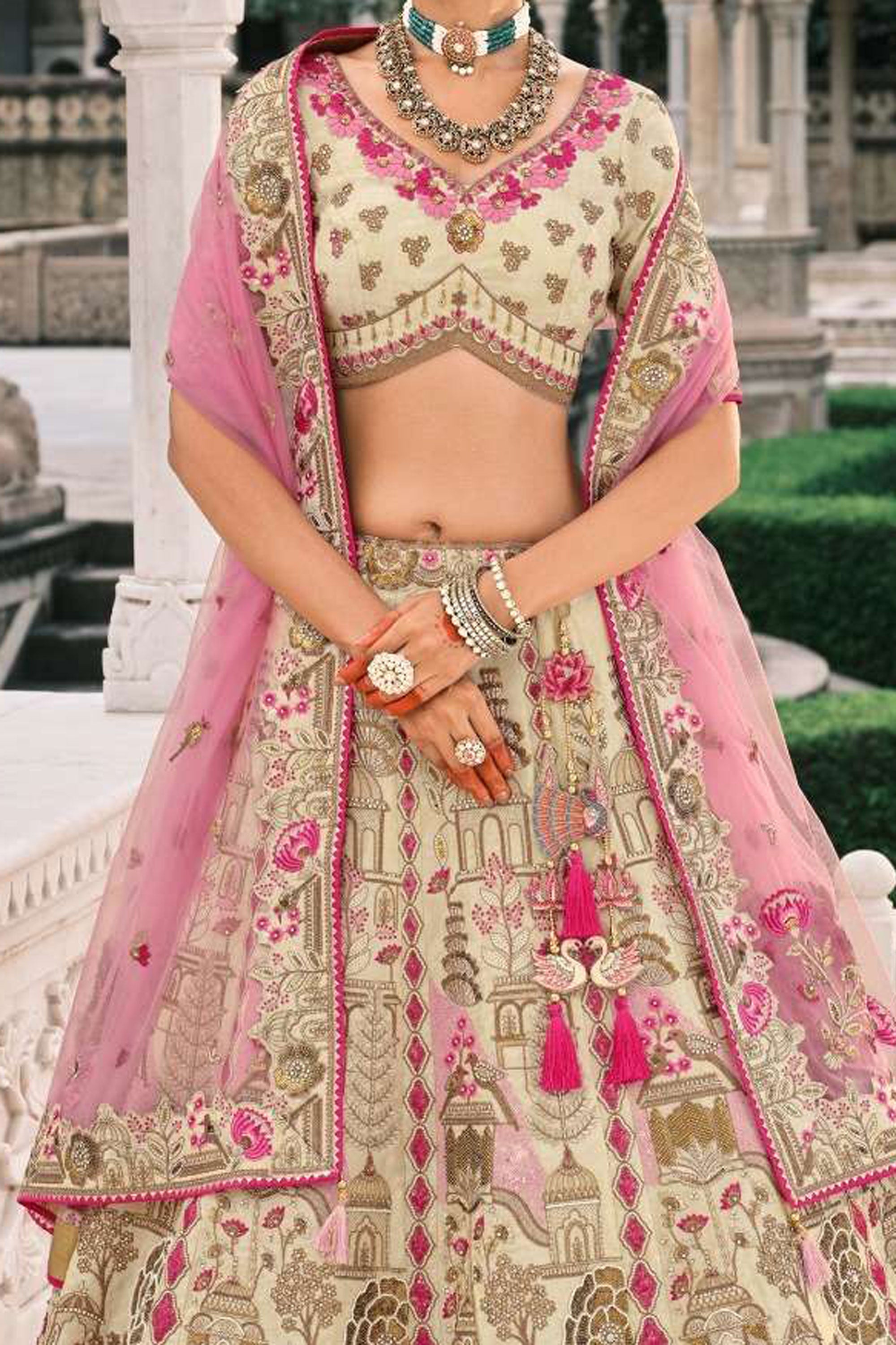 Beige Color Art Silk Fabric Wedding Wear Luminous Lehenga Choli