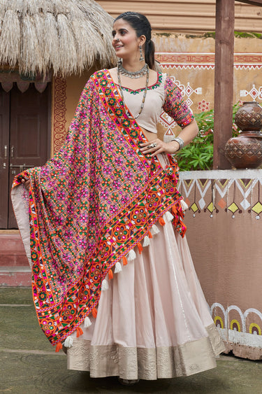 Beige Color Festive Wear Designer Embroidery Work Viscose Rayon Fabric Readymade Lehenga Choli