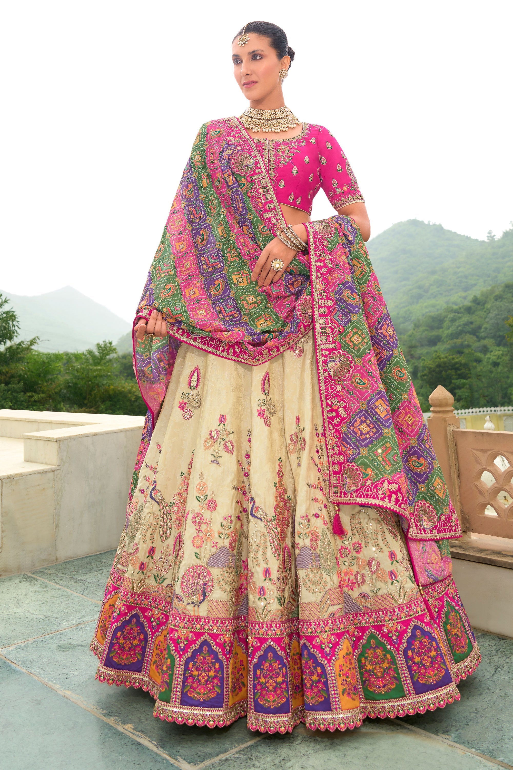 Beige Heavy Embroidered Bridal Lehenga Choli
