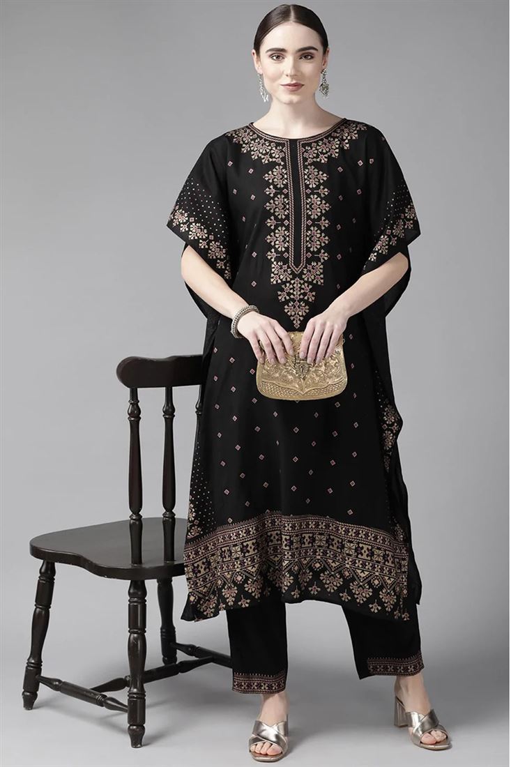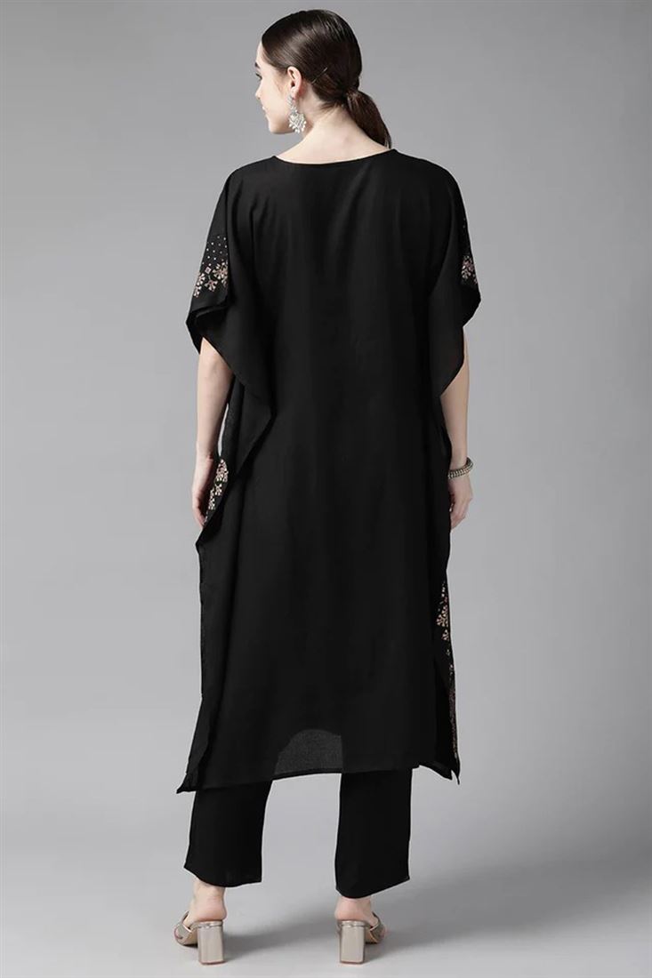 Black Color Aristocratic Rayon Fabric Kaftan With Bottom