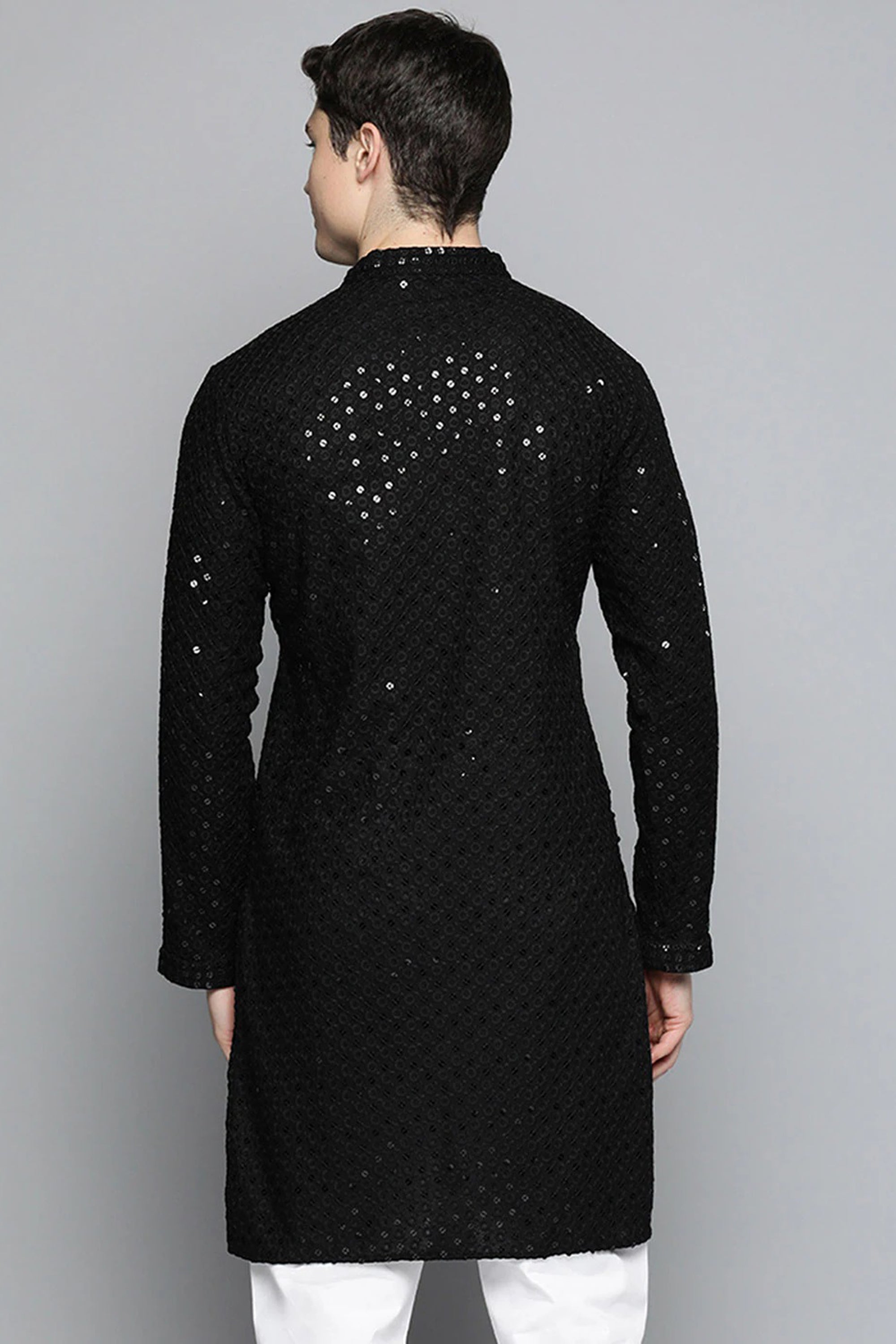 Black Color Beautiful Rayon Fabric Wedding Wear Readymade Kurta Pyjama For Men