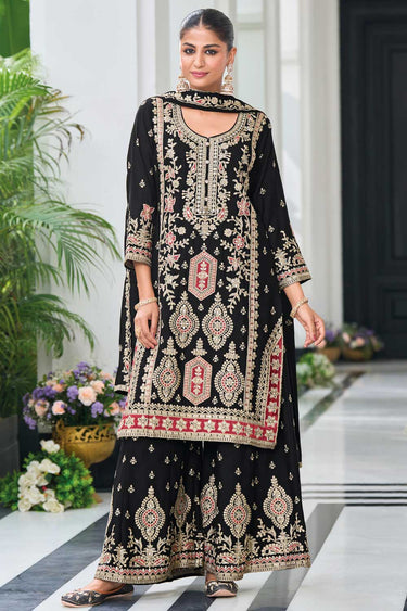 Black Color Chinon Fabric Trendy Readymade Palazzo Suit