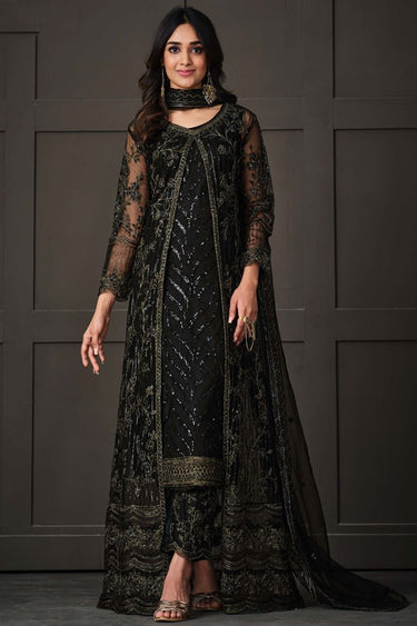 Black Color Gleaming Sequins Work Anarkali Suit In Net Fabric