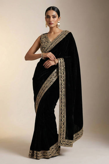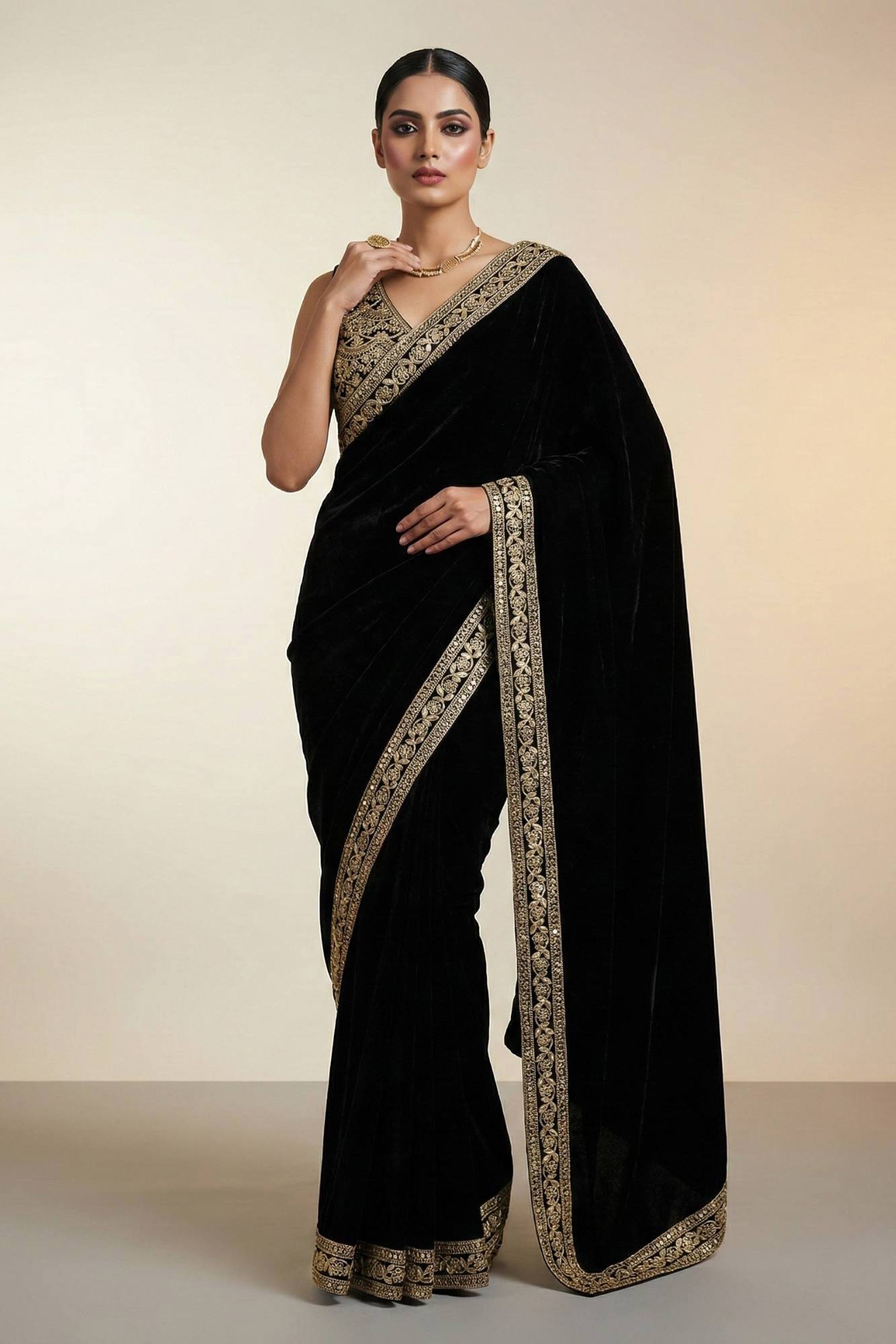 Make a stylish statement at any celebration with this elegant Party Wear Saree crafted in luxurious viscose velvet. The smooth drape and rich color enhance its overall appeal, while the detailed border work brings a sophisticated charm to the ensemble. Paired with a matching viscose velvet blouse, this saree is an ideal choice for parties and special occasions. Note: Due to digital photography, slight color variations may occur.