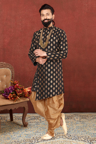 Black Pretty Jacquard Silk Fabric Wedding Wear Readymade Men Indo Western