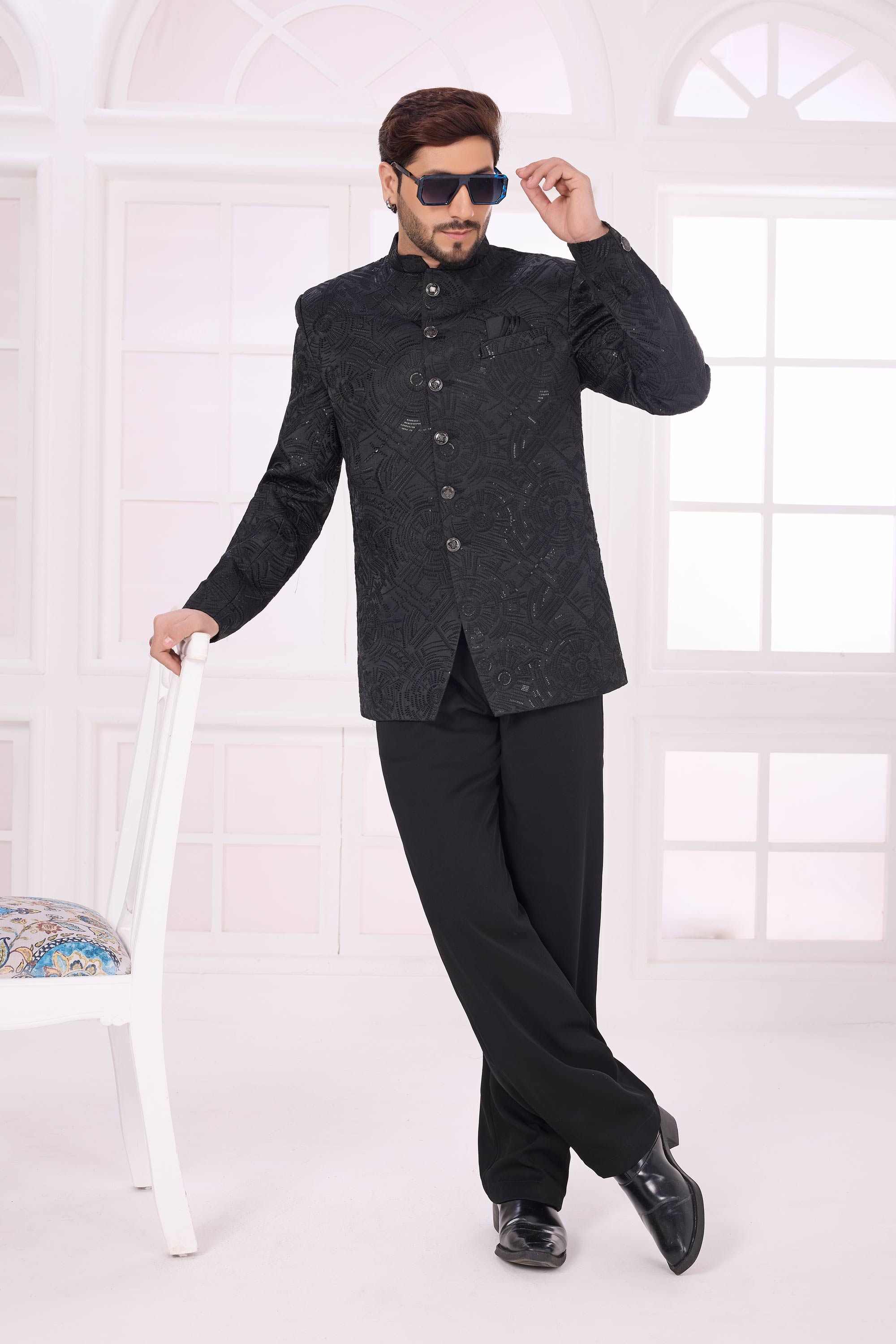 Black Velvet Fabric Readymade Jodhpuri Jacket For Wedding Wear