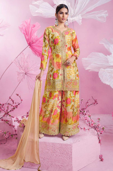 Blazing Multi Color Festive Wear Readymade Chinon Silk Palazzo Suit